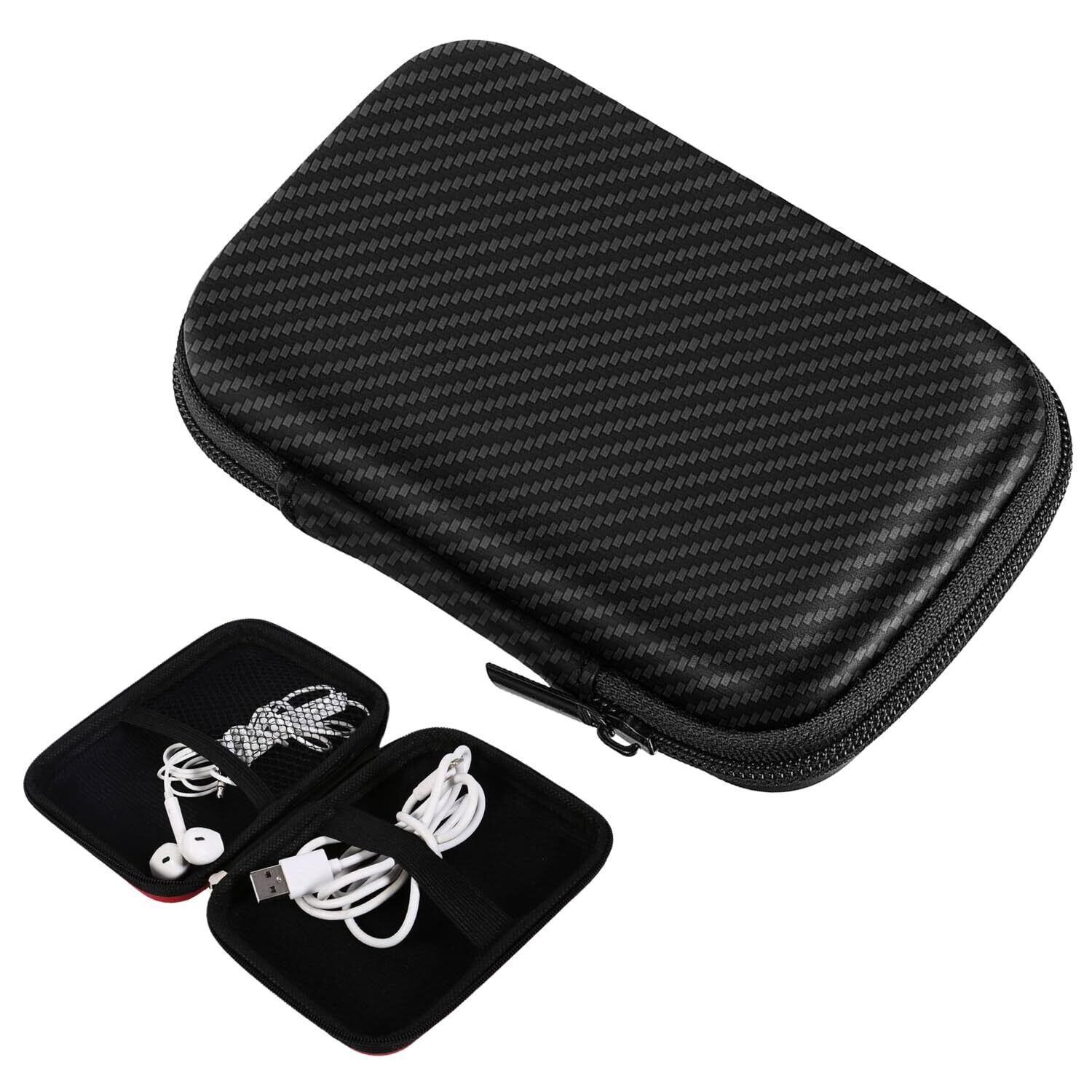 ガジェットケース モバイルバッテリー ケース ブラック/カーボンファイバー/グレー 多機能収納ボックス 携帯に便利 旅行 出張用 防塵防水設計 充電器 イヤホン収納に最適 (カーボンファイバー)