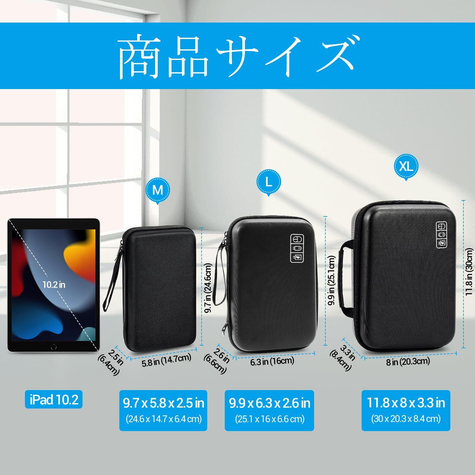 ProCase ガジェットポーチ、防水性のあるEVA材、大容量、3層仕組み MacBook アダプタ・ Magic Mouse 2・ USB Flash Disk・SD収納、スマホ・タブレット充電・ケーブルの小物入れ、PC周辺アクセサリーの整理バッグ– ブラック
