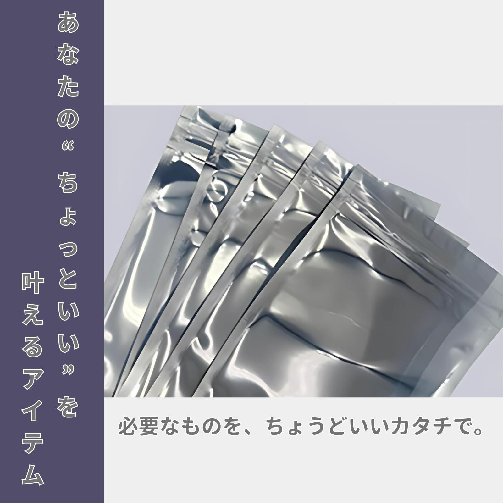 チャック付きのデザインは、内容物を簡単に出し入れでき、しっかりと密閉することができます。保管場所を選ばず、持ち運びにも便利な設計になっています。