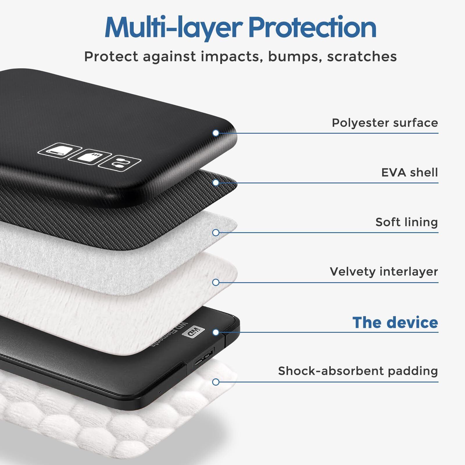 【丈夫な素材】ハード EVA シェルが HDD を衝撃、衝撃、傷、こぼれ、ほこりから保護します。