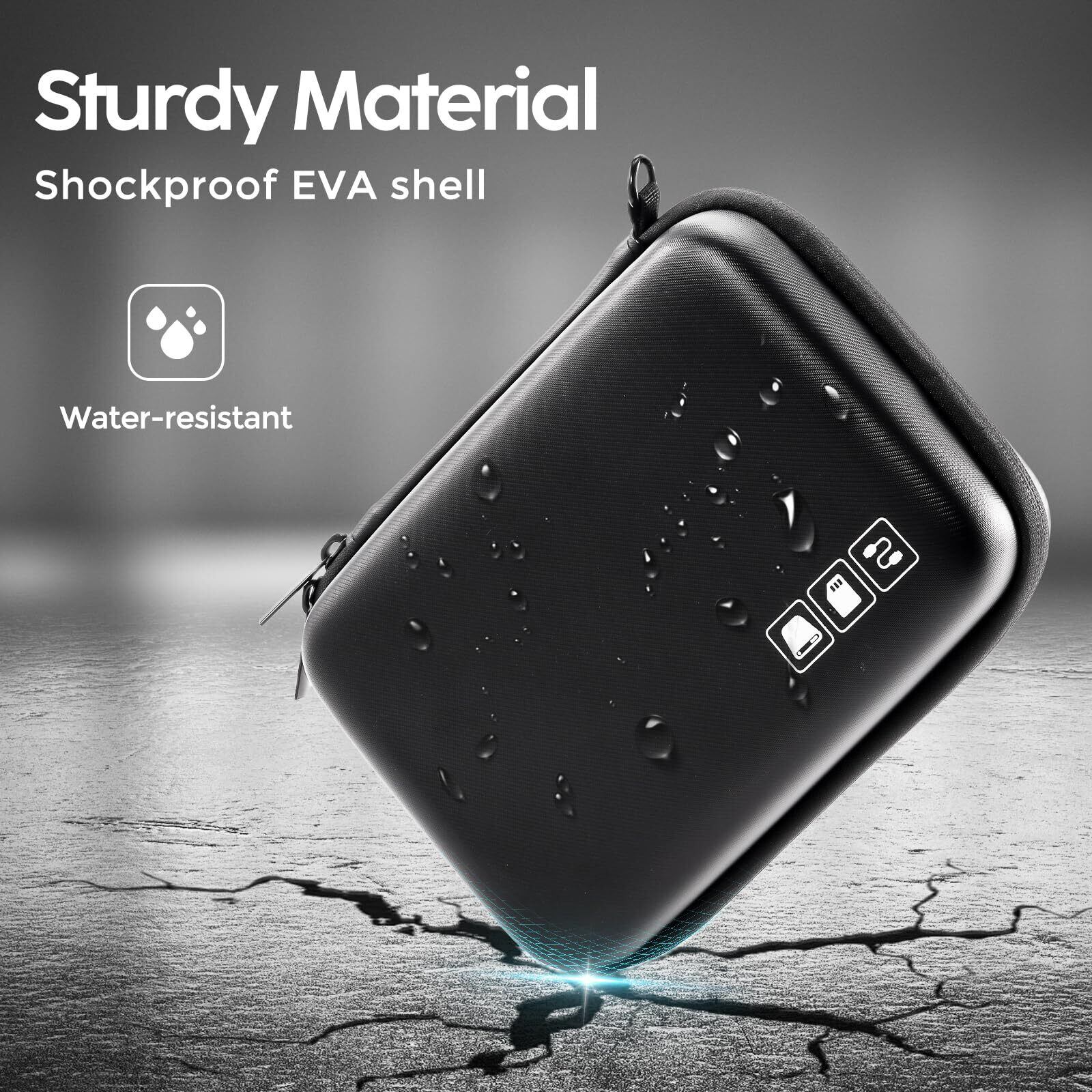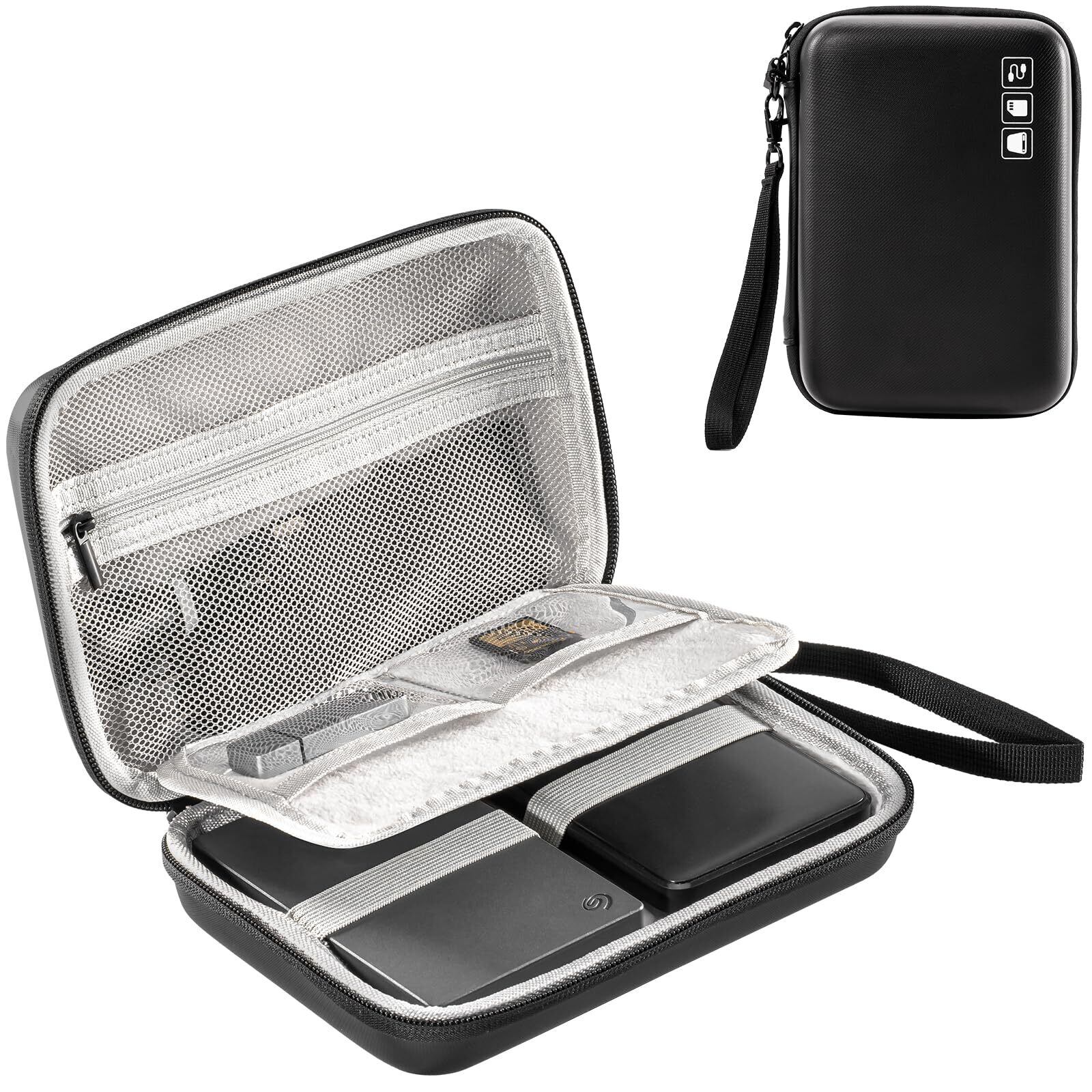 ProCase HDD 用収納ケース 携帯用 ハードケース 耐衝撃ハードEVA材質 2.5インチのハードディスク2個+ケーブル収納可能 - ブラック