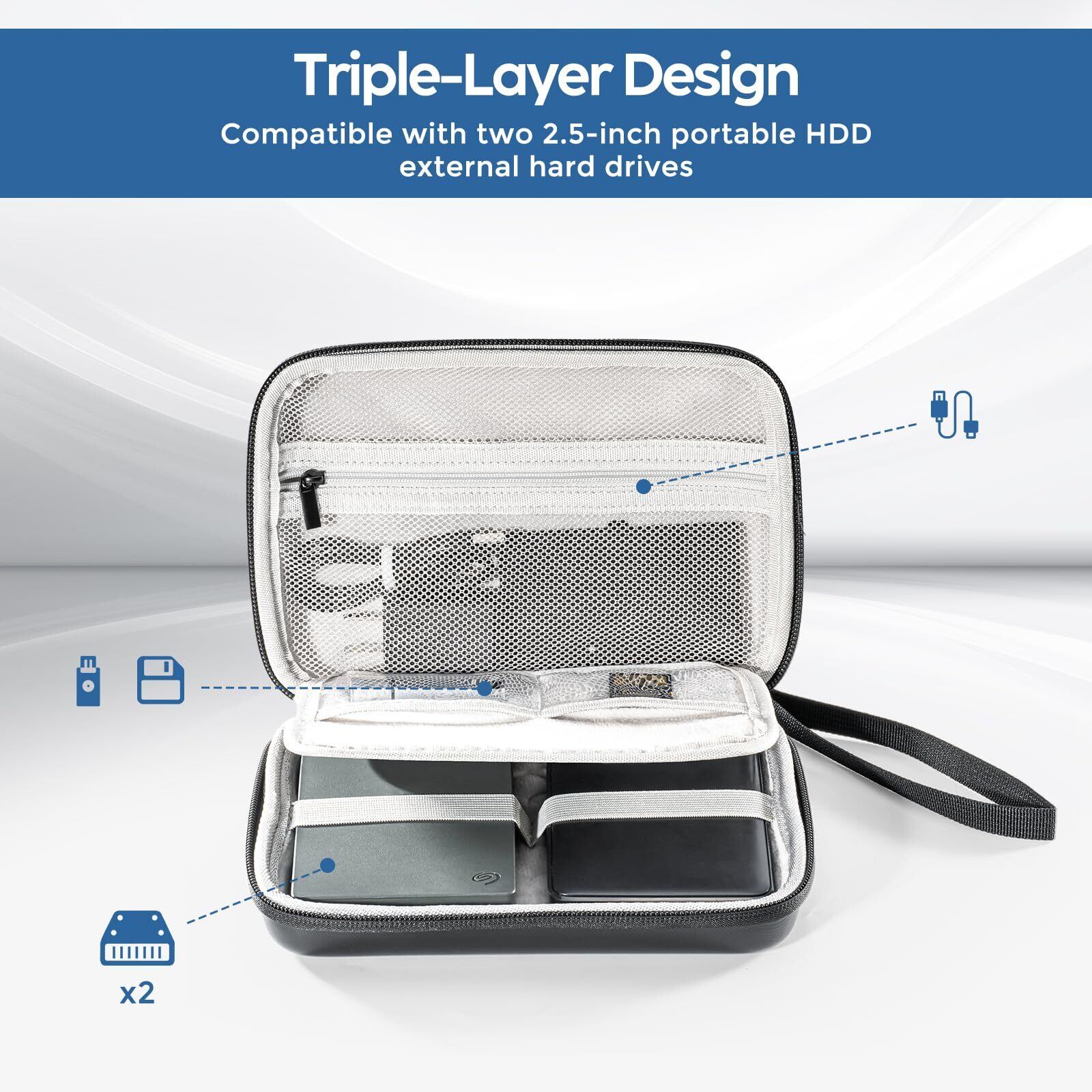 【互換性】ポータブルHDD外付けハードドライブに最適、2台のHDDとケーブルを収納できる容量。