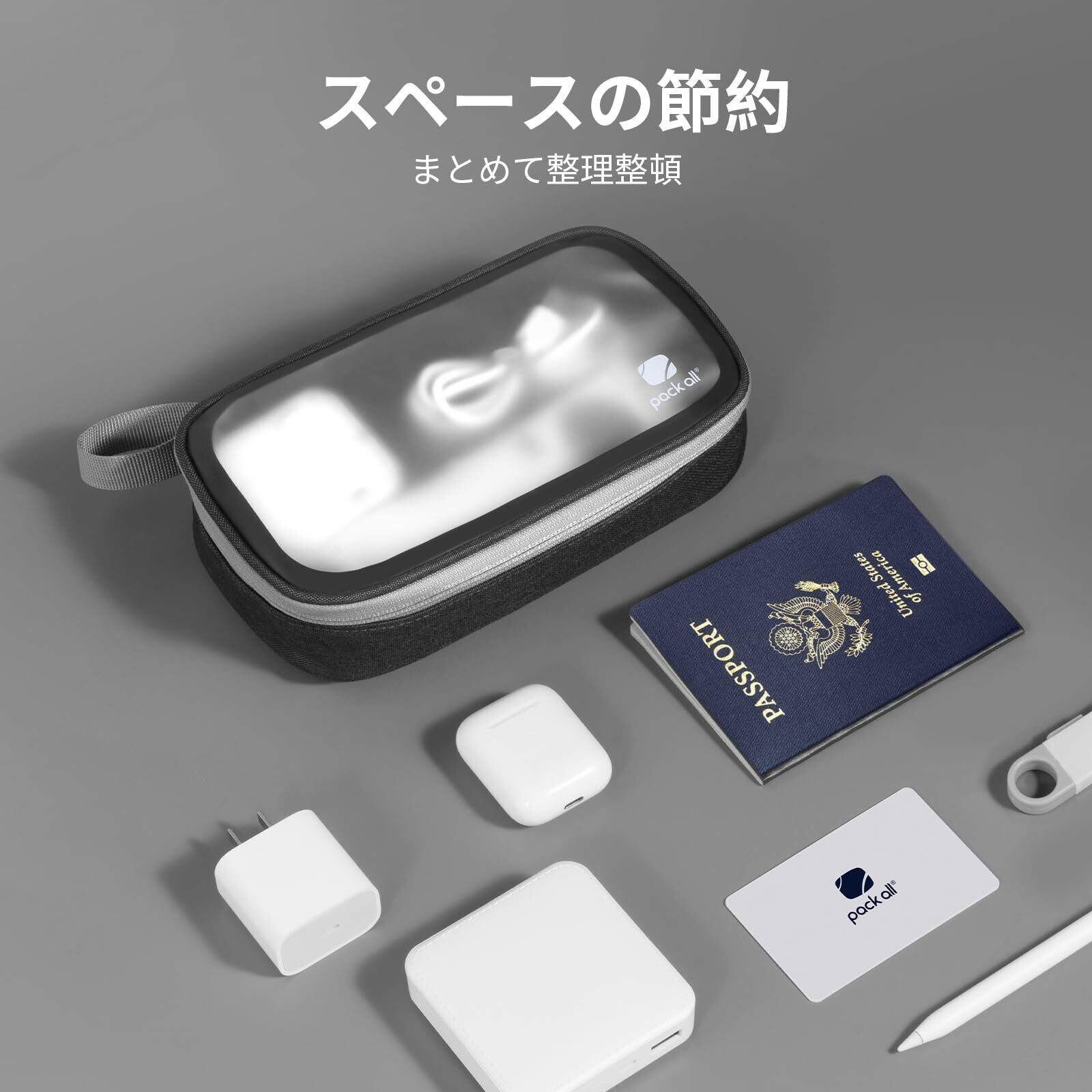 「pack all ガジェットポーチ」は、デジタルライフをサポートするために設計された便利な収納ケースです!TPU素材を使用した半透明デザインで、おしゃれに小物を保護しつつ、必要なアイテムをいつでも見渡せます。
