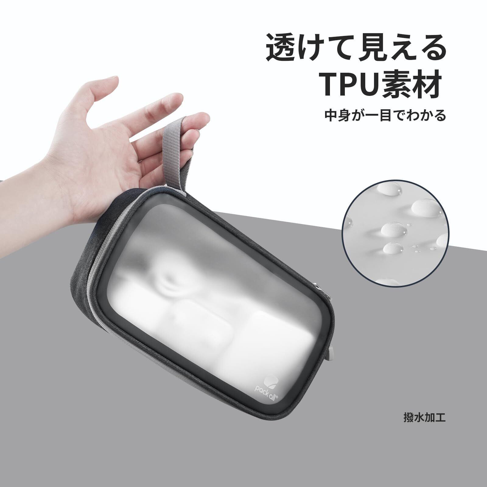 pack all ガジェットポーチ TPU半透明素材 防塵 撥水 ポータブル 収納保護ケース 小物収納 旅行 出張 充電器 スマホ USBメモリ SDカード収納対応 ブラック