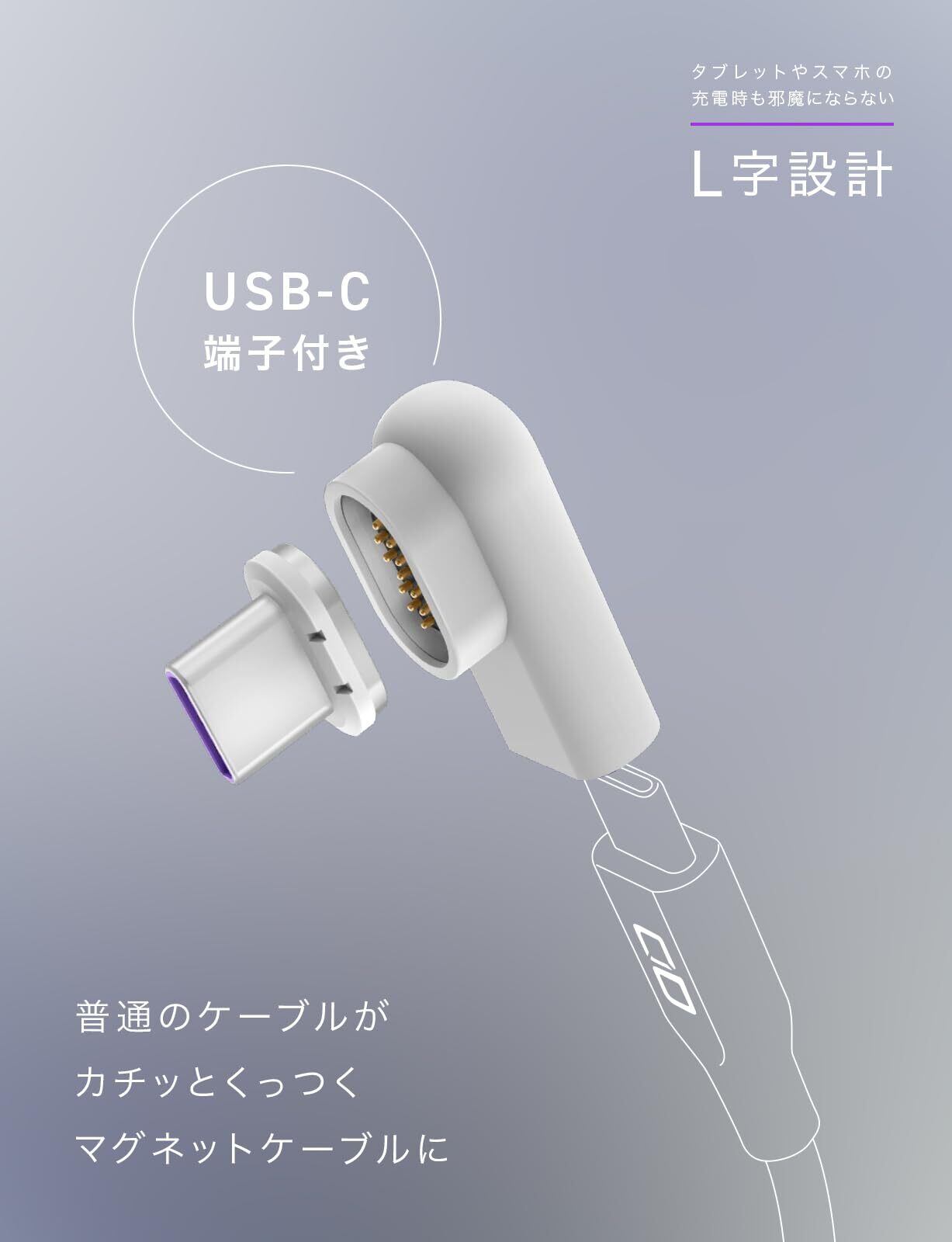 【ストレートタイプを便利なL字コネクタに】一般的なストレートタイプのUSB タイプCケーブルがL字コネクタのマグネットケーブルに!L字コネクタはスマホゲームや動画視聴、ノートパソコンの充電時にケーブルの取り回しが向上し、省スペース化にも便利です。