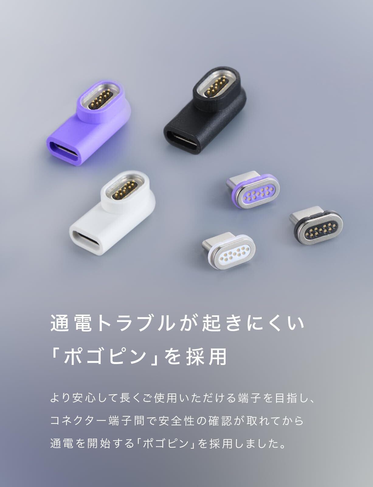 【通電トラブルが起きにくいた端子】CIOマグネットケーブルと同じく、コネクター端子間で安全性の確認が取れてから通電を開始する「ポゴピン」を採用。より安心して長くご使用いただける設計となっております。