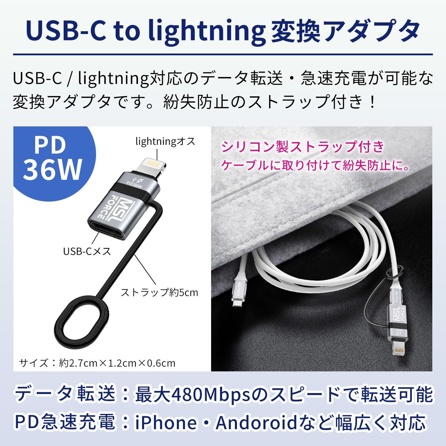 安心の日本企業 MSL FORCE Lightning to USB-C 変換アダプタ データ転送 (PC間のみ) PD充電 36W 480Mbps ストラップ付 ul011b-36w (充電専用 1個)