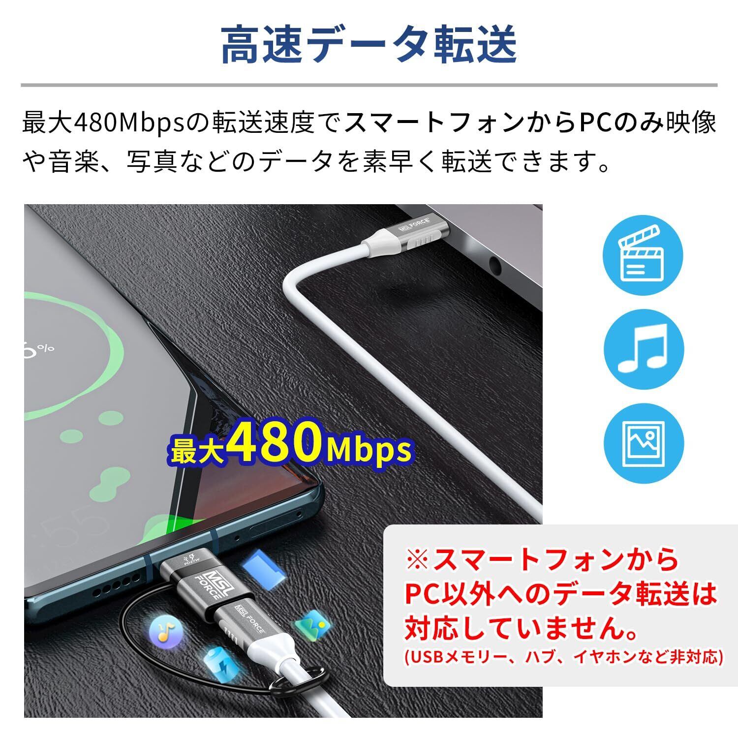 【高速データ転送】 最大480Mbpsの転送速度でスマートフォンやタブレットからPCへ映像や音楽、写真などのデータを素早く転送できます。データ転送しながら同時に急速充電も可能です。※OTG機能に対応していない為、スマートフォンまたはタブレットからPC以外のデバイスにデータ転送できません。