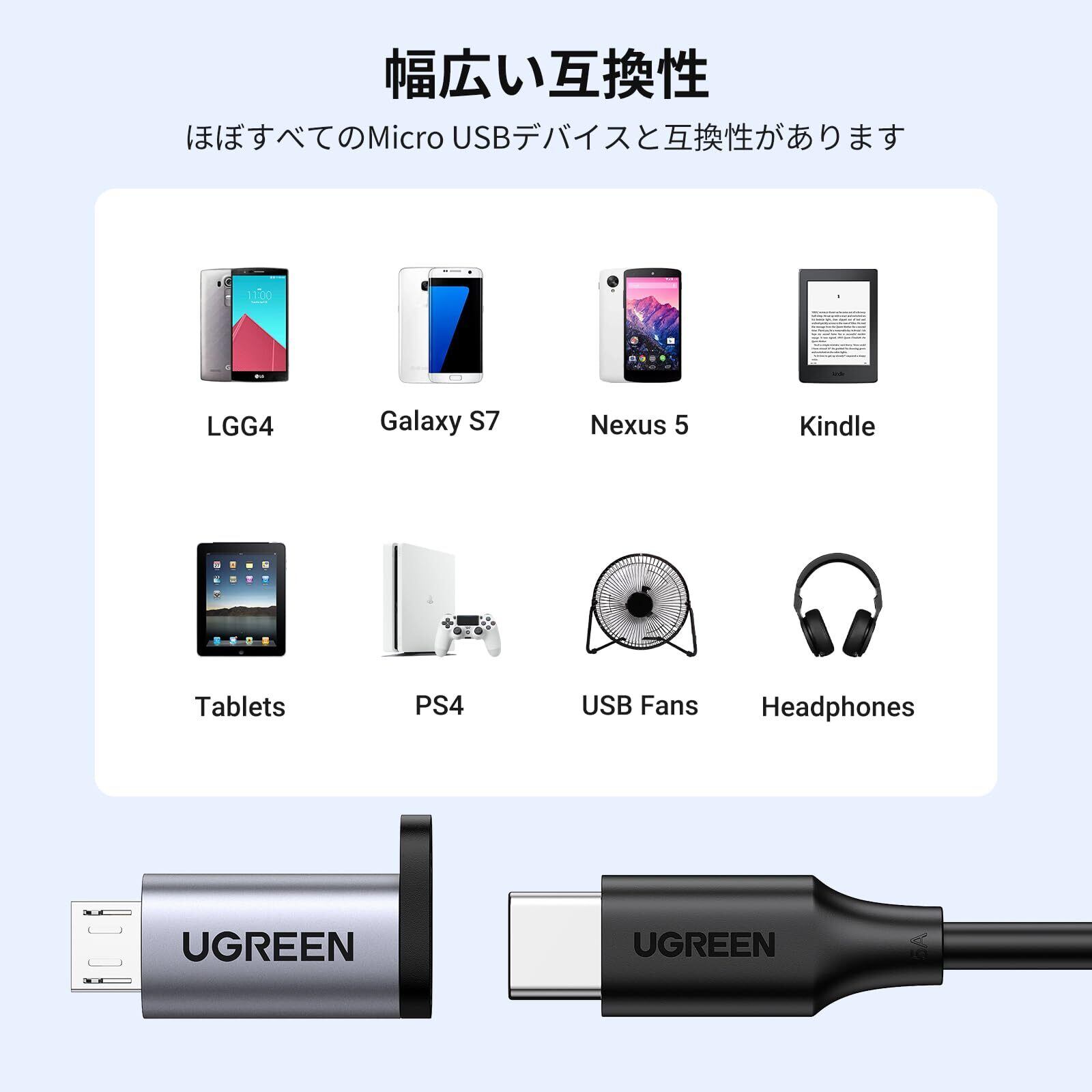 UGREEN マイクロUSB変換アダプター 2個入り USB C to Micro USB 変換コネクタ 急速充電とデータ同期 Xperia、Galaxy S7 Edge、Nexus、 P10 Lite等Micro USB設備対応 ストラップ付