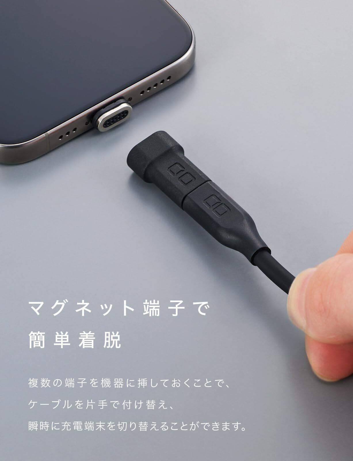 【マグネットケーブルのメリット】iPhone 17 / 16 など、スマートフォン や USB タイプC ポート搭載機器に ケーブル を近づければ磁石でカチッと吸着して充電。そんな圧倒的な手軽さと利便性を持った充電ケーブルがマグネットケーブルの良さ。デバイスのUSBポートをのぞき込まなくても近づけるだけでカチッと充電できる心地よさを、是非ご体感ください。