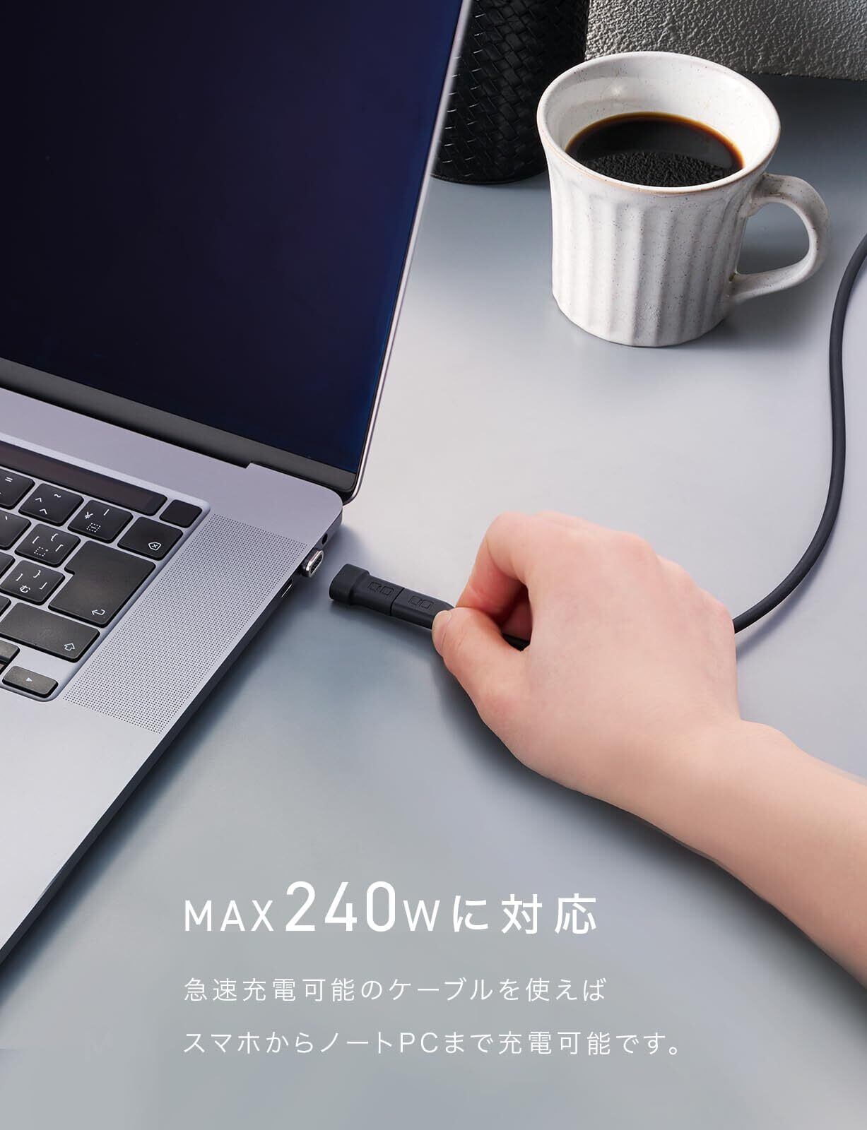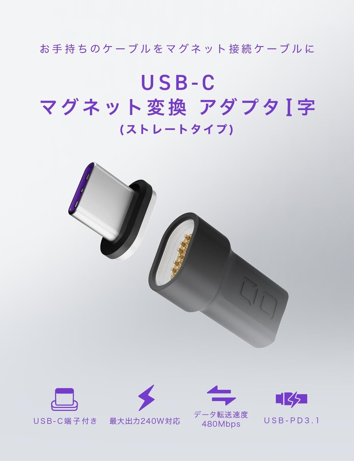 ※マグネット変換アダプタは映像出力には非対応となっております。※e-Marker非搭載ですが、e-Marker内蔵のケーブルと組み合わせてご使用いただくことでe-Markerを認識し、最適電力調整に対応いたします。※仕様として最大240Wの出力に対応しておりますが、接続するケーブルの対応出力に準じた出力が上限となります。※急速充電に対応(USB-PD3.1)しておりますが、データ転送は上限最大480Mbps、USB2.0規格となります。