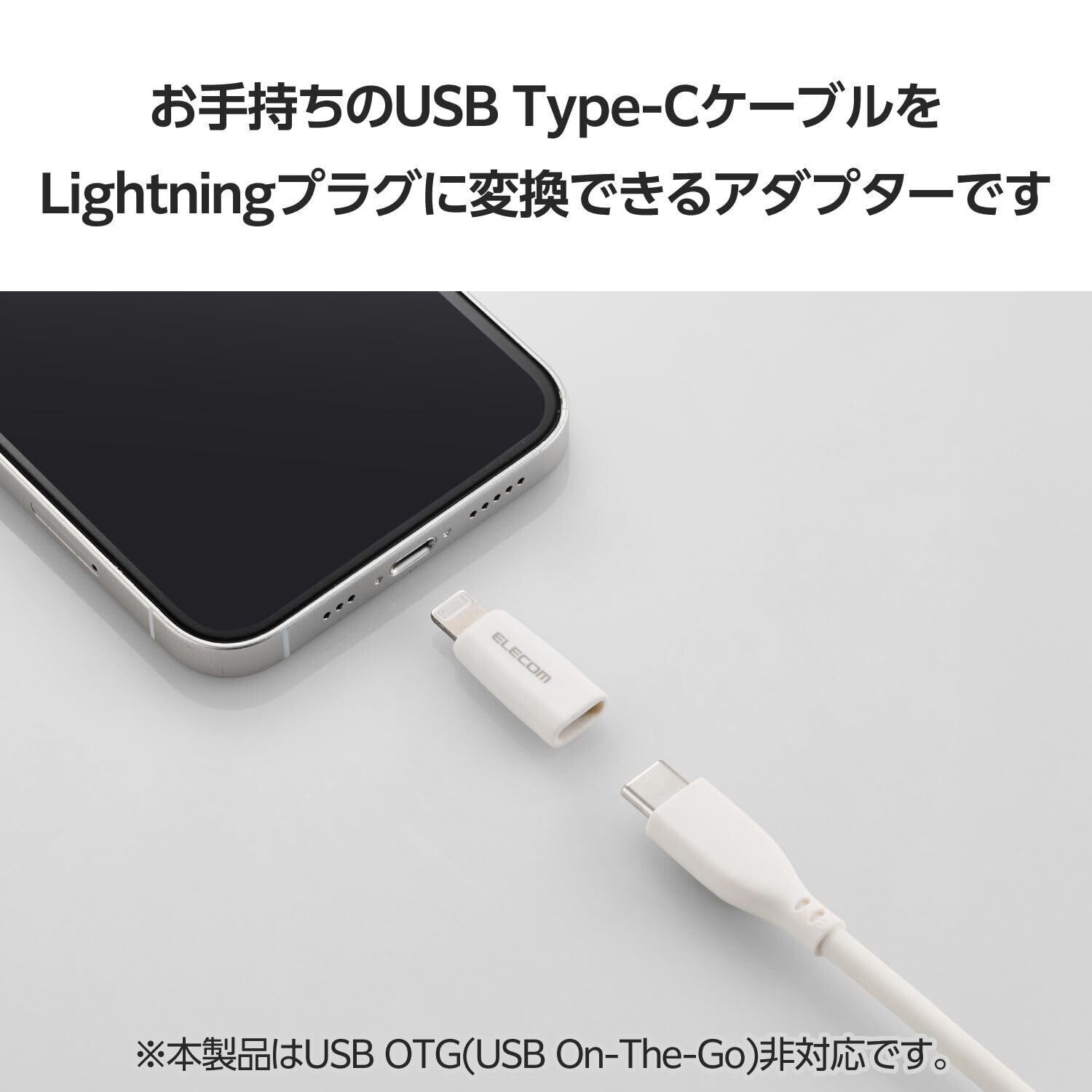 ■USB Type-C(TM)プラグをLightningプラグに変換するアダプターです。USB Type-CケーブルでLightningポート搭載端末の充電やデータ転送を可能にします。