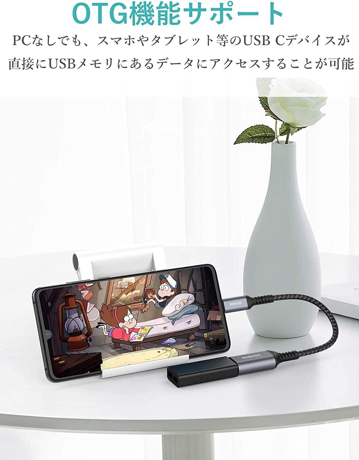 NIMASO USB C 変換 アダプタ (Type C - USB 3.0 メス) 20CM OTG ケーブル タイプC 変換コネクター (1本入り, グレー)!