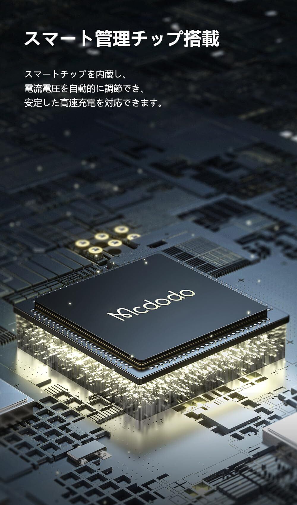 搭載されたスマートチップにより、デバイスを安全に接続し、最適な充電とデータ転送が可能です。温度管理や過電流保護も行い、デバイスをしっかり守ります。