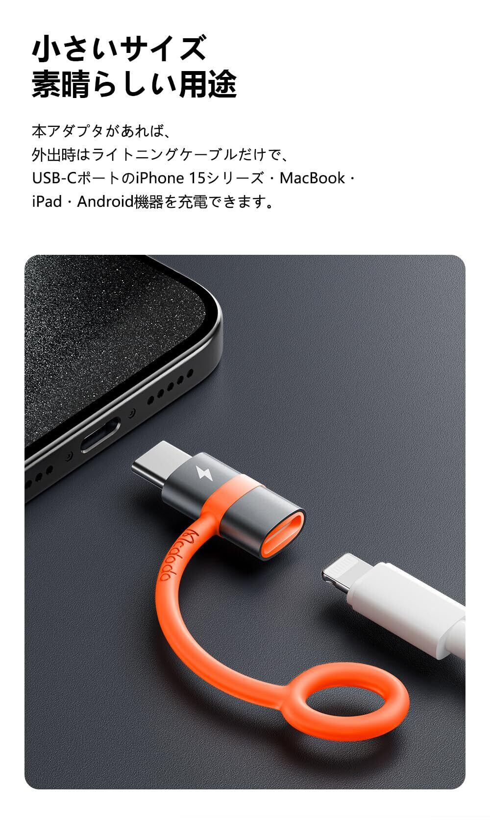 【幅広い互換性】:このライトニング to タイプC変換アダプタは、USB-C端子搭載のノートパソコン・タブレット・スマホ・ワイヤレスイヤホンケースなど機器への高速充電をサポートします。MacBookシリーズ、iPad Pro/Air、iPhone 17/Air/17 Pro、iPhone 16/16 Plus/16 Pro/16 Pro Max、iPhone 15シリーズ・Galaxy・Xperia・Pixel・AndroidなどUSB-C機器を対応します。【高品質な素材】:アルミ合金素材を採用して、高速に放熱可能ですし、性能が安定しています。精密なコネクタにより、スムーズに抜き差すことが可能です。インターフェースは平らで、ぴったりとフィットし、緩みません。【親切な設計、紛失防止】:シリコンザイル設計は、ケーブルに直接被せることができます。Type-C端子を搭載した機器を接続して充電でき、紛失にくいです。