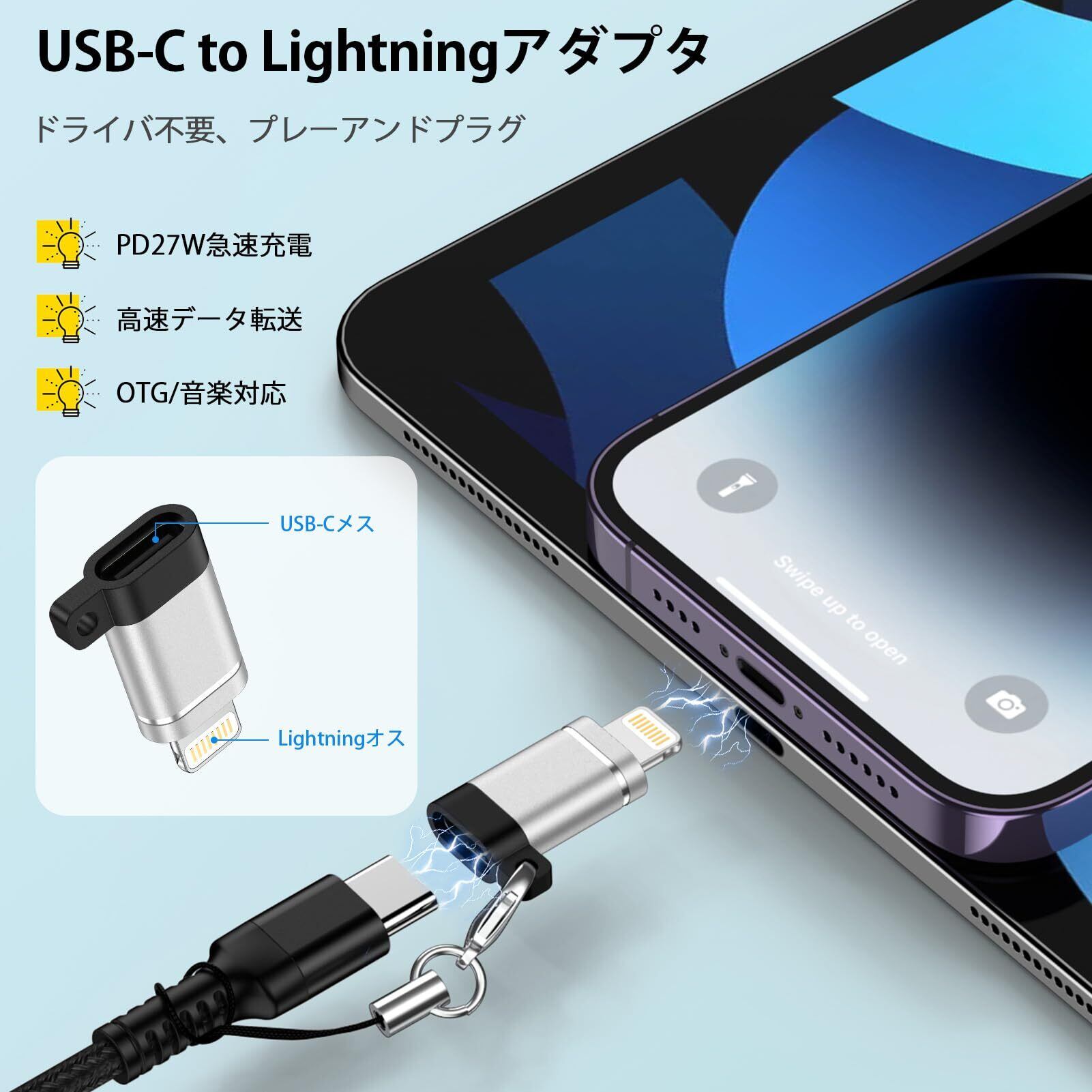 Type Cからライトニング変換 防紛失ストラップ付 タイプC Lightning変換アダプタ OTG機能 急速充電/高速データ転送 USB C(メス)-Lightning(オス)iPhone・iPad・AirPodsなどiOS機器対応