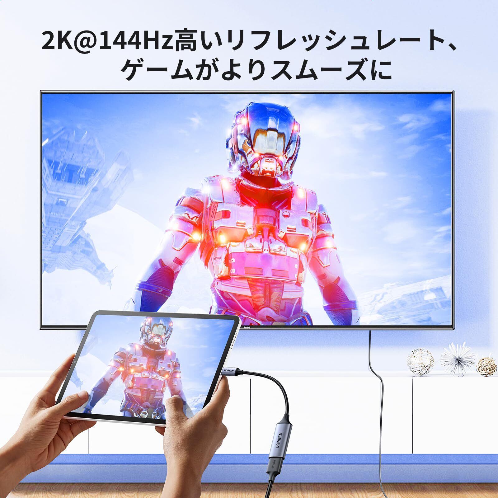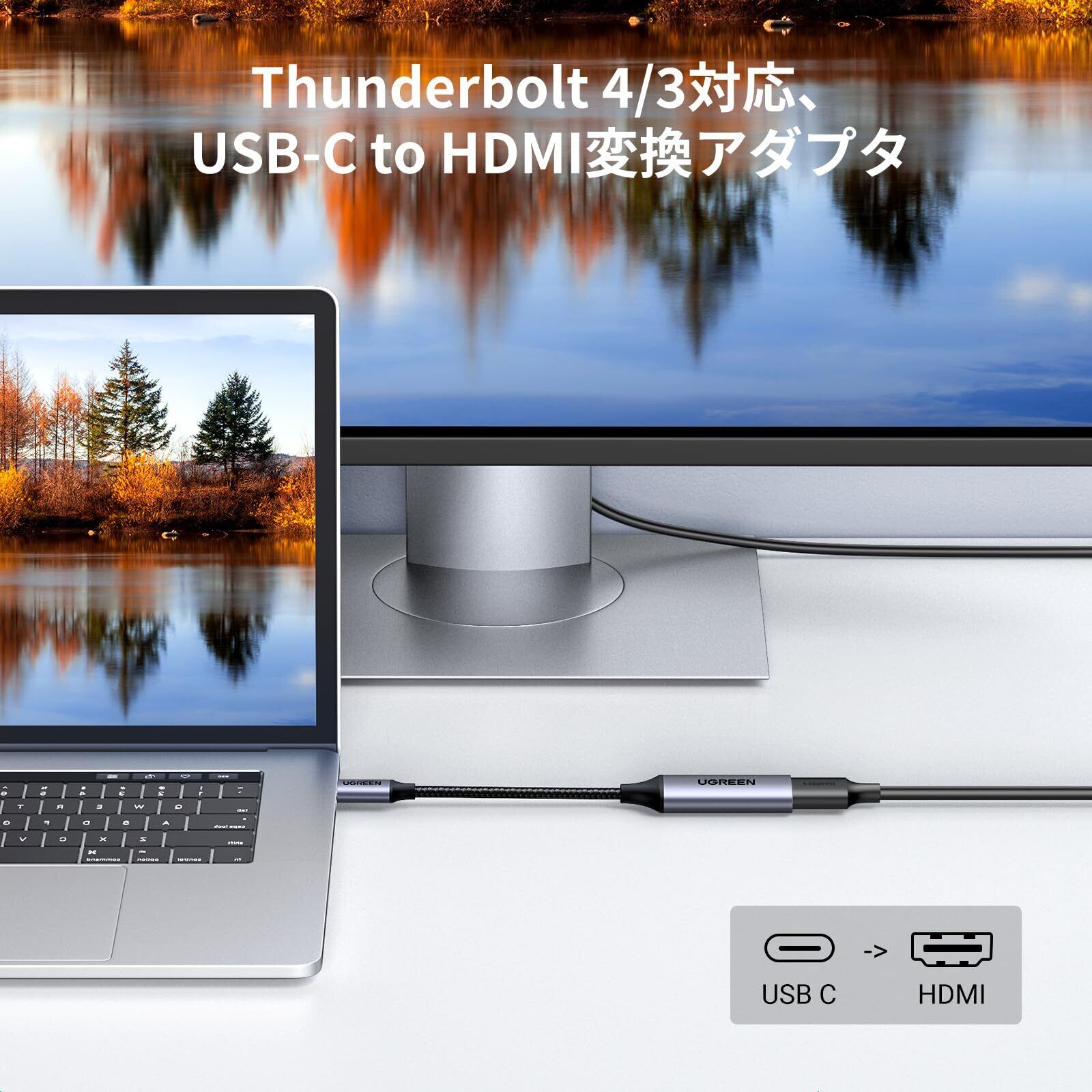 UGREEN USB C HDMI 変換 アダプタ Thunderbolt 4/3 タイプC HDMI 変換 4K@60Hz 2K 1080P 対応 iPhone 16 15 Pro Max Plus, iPad Mini Air, MacBook Pro, Galaxy S24/23 Ultra, iMac XPS 17などに適用!