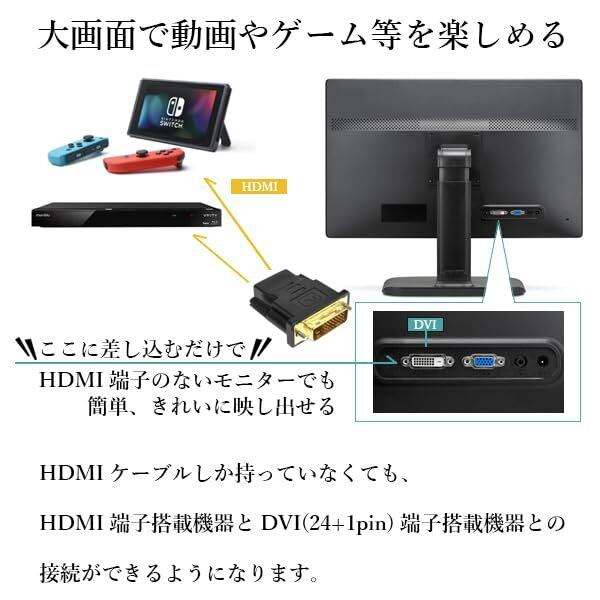「HDMI DVI 変換 アダプタ ケーブル」は、映像をより美しく楽しみたい方にお勧めのアイテムです!このアダプタを使うことで、DVI出力を持つデバイスからHDMI入力を持つディスプレイへ、またその逆の接続がスムーズに行えます。