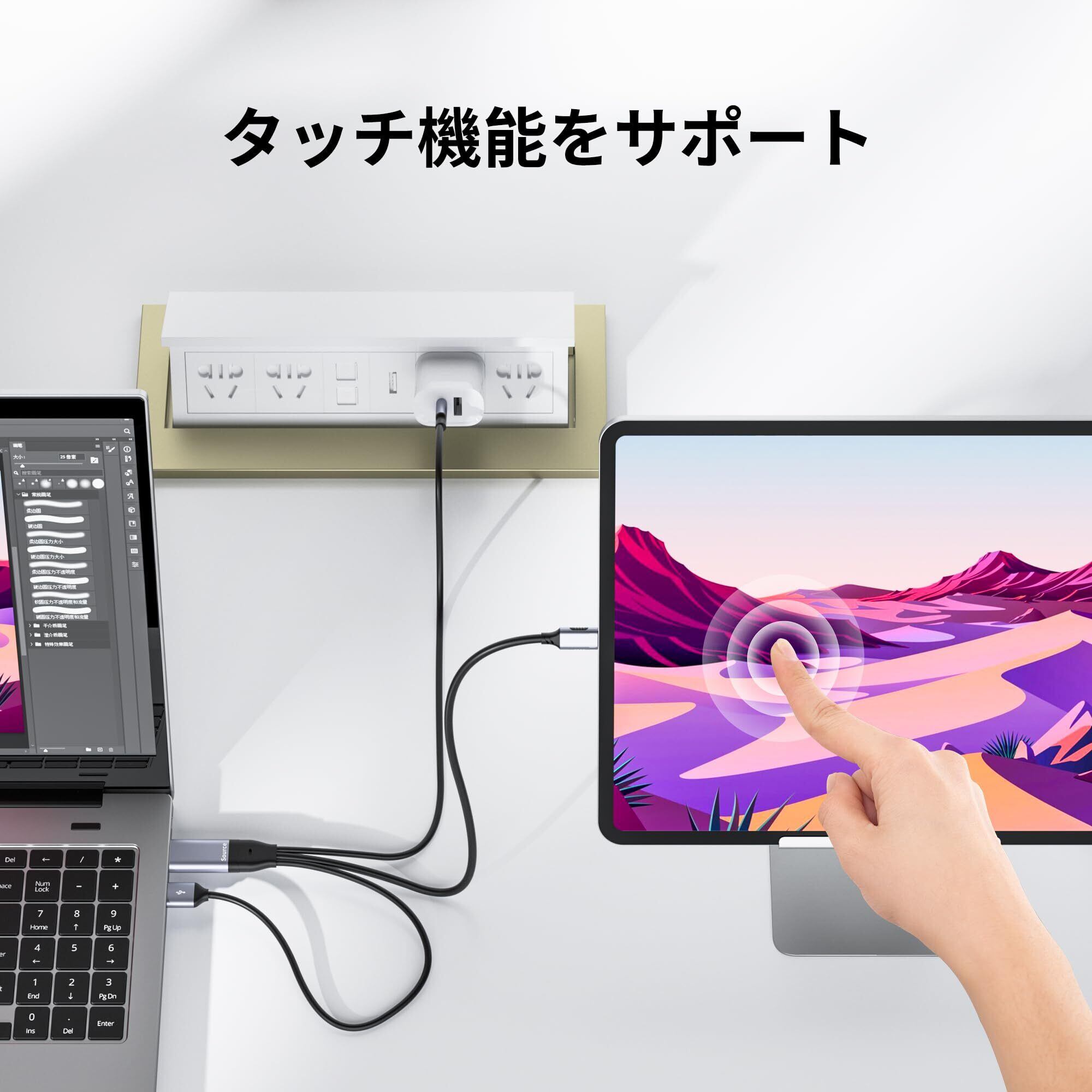 多機能設計:このHDMI to type-C 変換ケーブルはHDMI信号の伝送だけでなく、USB-A電源ポートとUSB-C電源ポートも搭載しています。USB-A電源ポートはHDMI to USB-C 変換ケーブル内のチップに電力供給を行い、タッチパネル機能をサポートすることができます。USB-C給電ポートは最大でPD60Wの給電が可能です(注意:ご使用の機器および充電器がPD3.0に対応していることをご確認ください。ご不明な場合は、該当機器の製造元にお問い合わせください)。