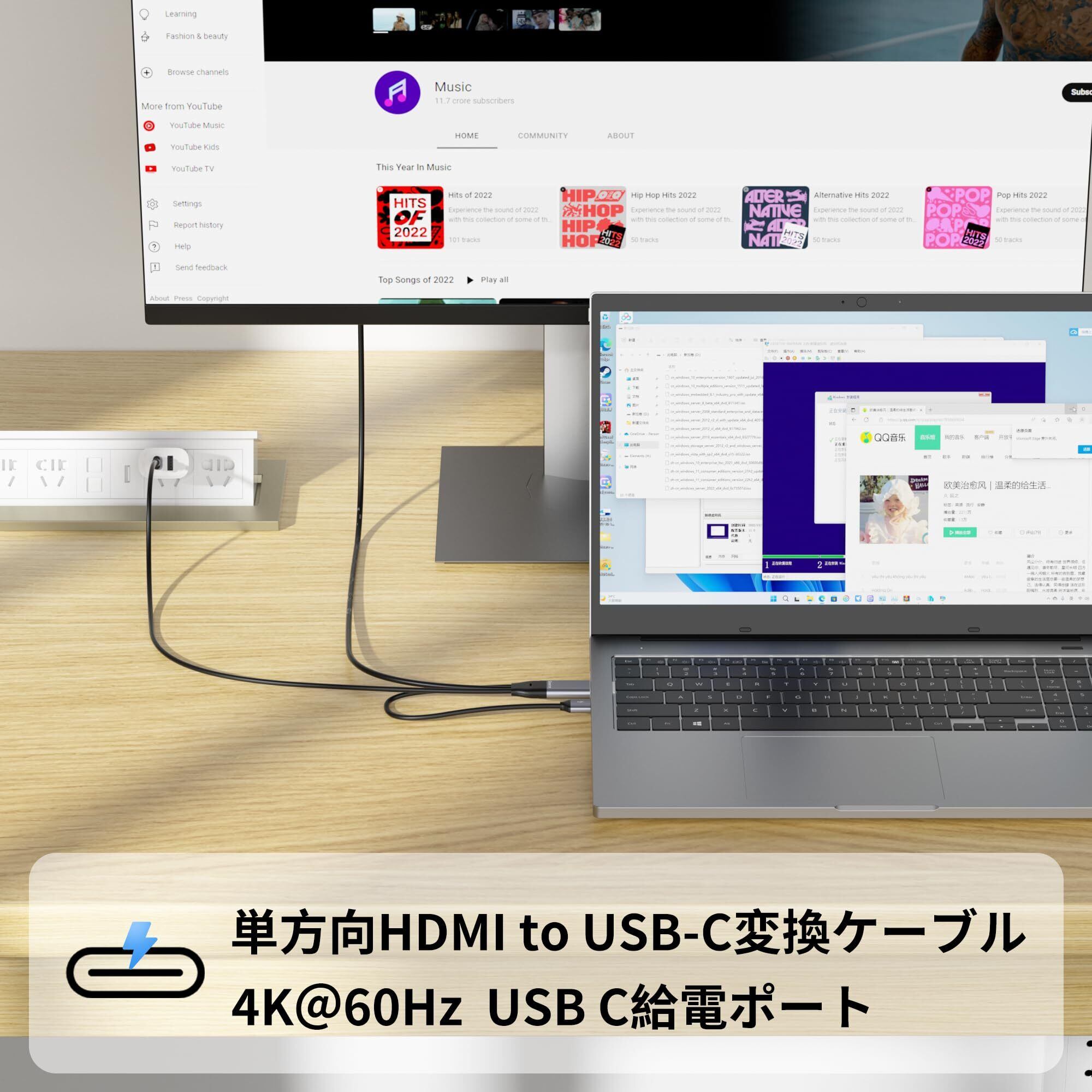 高品質のHDMI to USB-C変換ケーブル:当社のHDMI to USB-C 変換ケーブルは、高品質な素材を使用しており、安定した信号伝送と高品質な画像表示をしています。4K@60Hzの高解像度を快適に楽しむことができますし、他の解像度にも下位互換性があります。このHDMI to USB-C 変換ケーブルはHDMIからUSB-Cへの信号転送専用であり、逆方向の転送はサポートしていません。PC、ノートパソコン、グラフィックカード、TVボックスなどのHDMI出力ポートにHDMIメスコネクタを接続し、TV、モニター、ポータブルモニターなどにUSB Type Cポートを接続してください。Dell Monitor U2419HCなどのラップトップのHDMIからUSB Cモニターへの接続をサポートします。※USB-Cの携帯電話やUSB-Cのノートパソコンには対応していません。