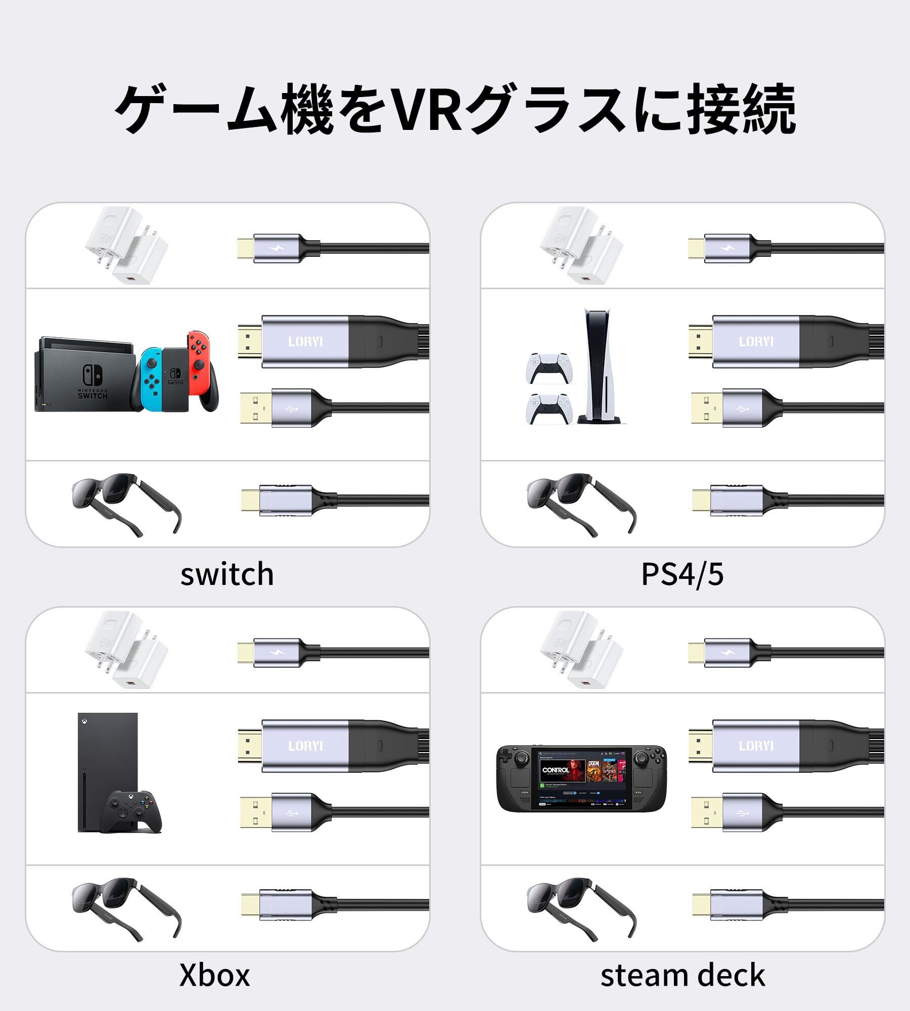 広範な互換性:この変換ケーブルはさまざまなシナリオで使用することができます。PS4、Switch、Xboxなどのゲーム機をAR眼鏡に接続して没入型のゲーム体験を楽しむことができます。また、他のHDMIデバイスをUSB-Cデバイスに接続するためにも使用でき、さまざまな接続ニーズに対応します。※もしNreal Airとこのケーブルを使用して、画面の上部が下部に表示される場合は、Nreal Airのウェブサイトにアクセスして最新のファームウェアをアップデートしてください。