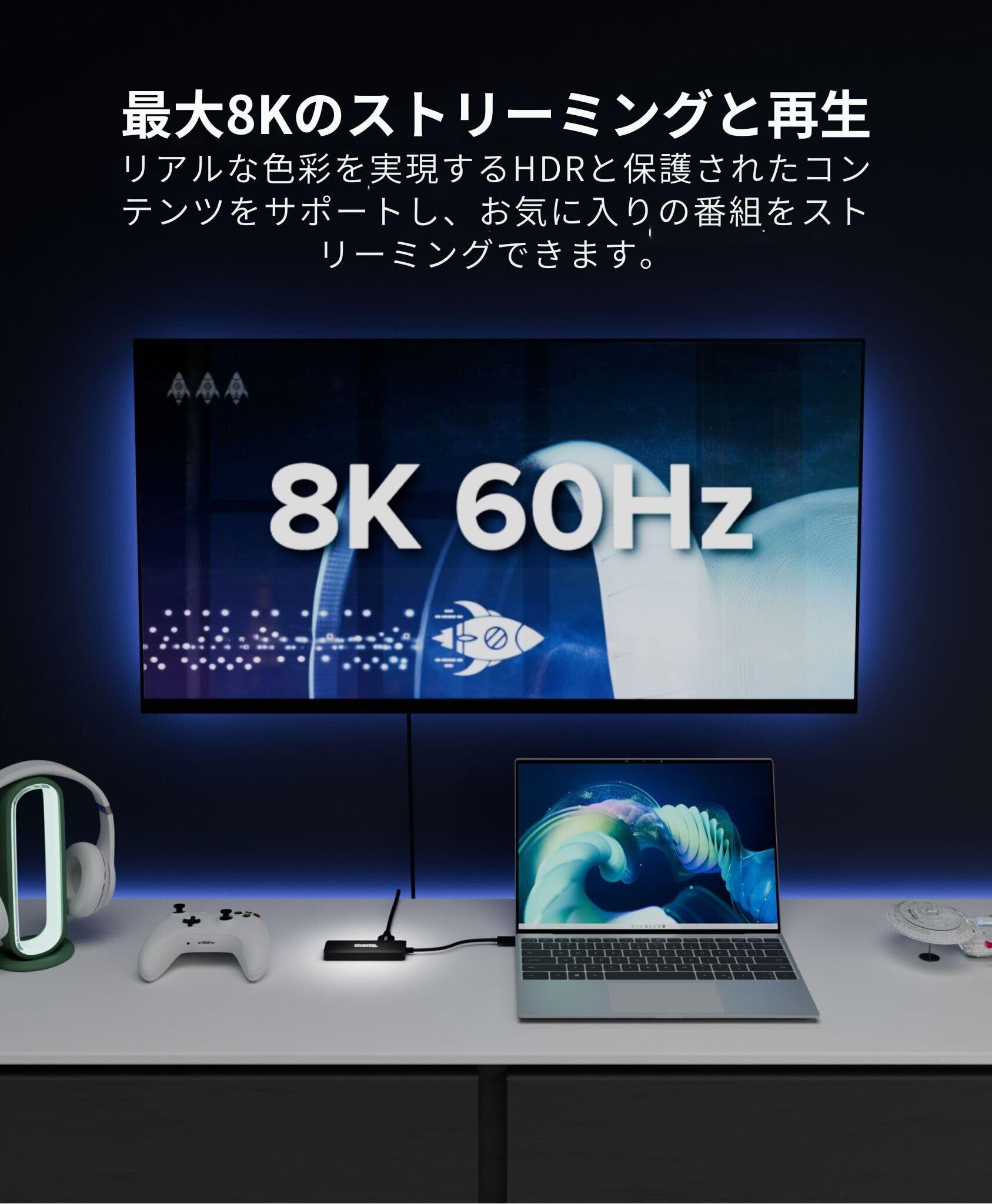 驚異の高解像度: 最大3台のUHDディスプレイを4K 60Hzで接続、または1台のディスプレイを最大8K 60Hzで出力可能。リフレッシュレート重視の方へ、最大2台のディスプレイを4K 144Hzで設定可能。