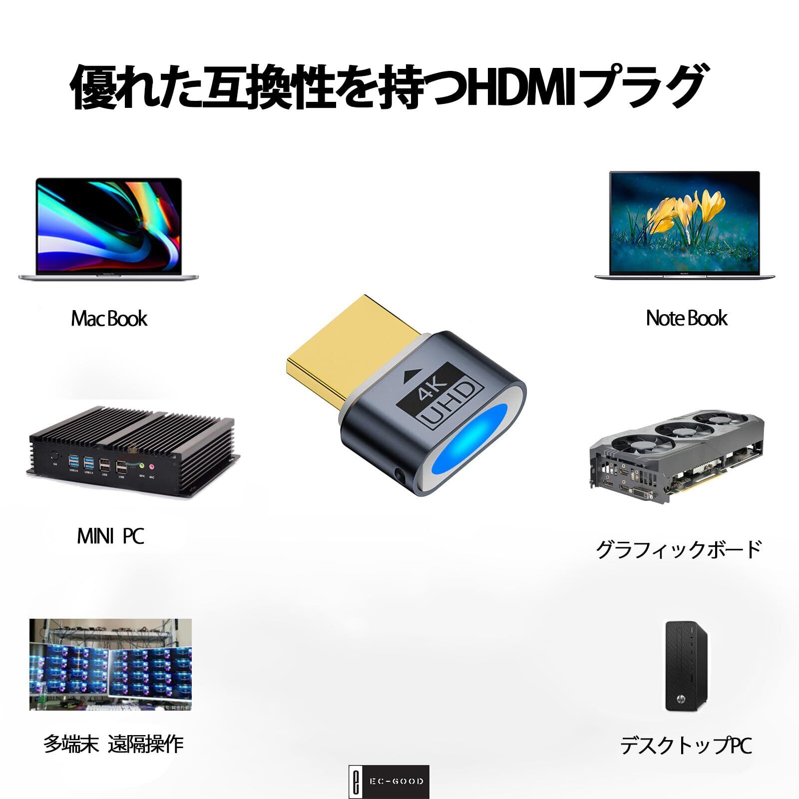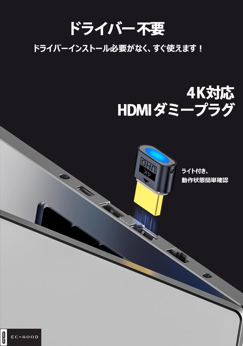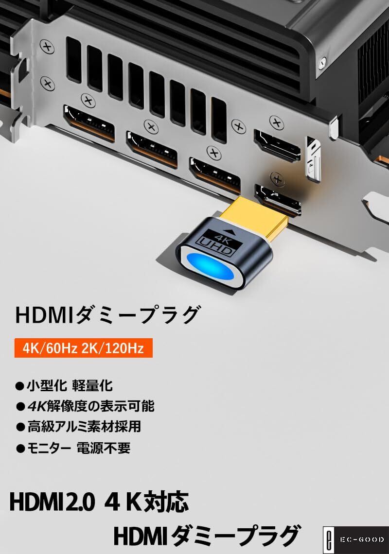 HDMIダミープラグによる便利さを体験 仮想HDMIダミープラグはビデオカードに挿入し、ダミーディスプレイとして認識させ、4K/60Hz 2K/120Hzの解像度でパソコンを起動させることができます。本物のモニターが不要で、ミニPC、サーバー、遠隔操作などにご活用いただけます。
