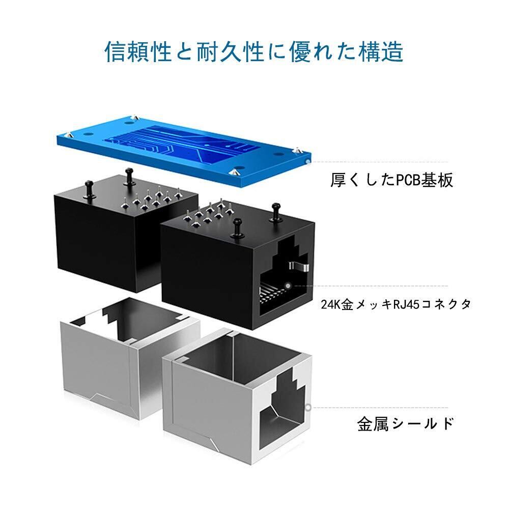 この中継コネクタは、Cat7、Cat6、Cat5eのLANケーブルに対応しており、最大で1Gbpsのデータ転送を可能にします。確実な接続により、ストレスフリーなインターネット体験を提供します。家庭やオフィスでの様々なネットワーク環境に最適です。