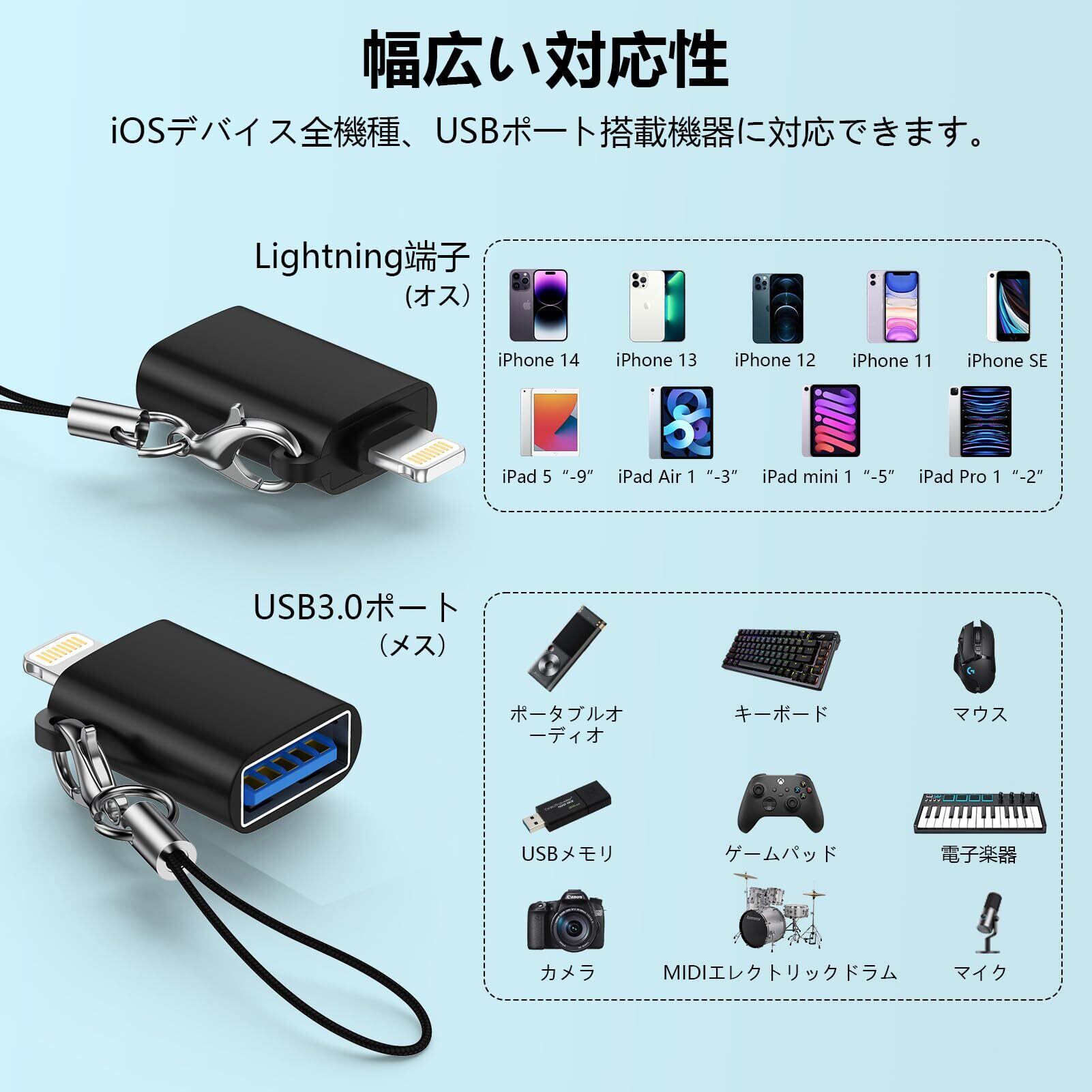 【2025年MFi認証品】ライトニング USB変換 iPhone OTGアダプタ USB3.0カメラアダプター usbメモリ5Gbps高速双方向データ転送 写真移行 設定不要 写真/動画/資料読み込み カメラ、USBフラッシュドライブ、カードリーダー、MIDIキーボード、マウスの接続をサポート!
