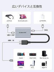 【HDMI to USB C 交換アダプター】ノートパソコン、Fire stickTV、ゲーム機、DVDプレーヤーなどHDMI端子を搭載した、ビデオ出力をサポートするデバイスのHDMIインターフェースに常に挿入してください。 また、このアダプターの電源供給には、パッケージ内のUSB-Cケーブルを使用する必要があります。【注意】:本アダプターHDMI to USB-C方向交換だけ、逆方向:USB-C to HDMI 交換転送を対応しません!