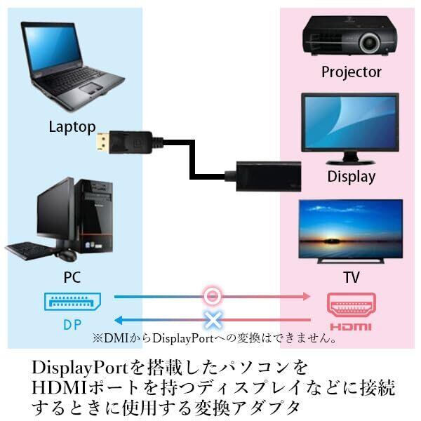 この-DisplayPort(ディスプレーポート)ケーブルを使用して、 DisplayPortを装備したデスクトップまたはラップトップをDisplayPort入力付きのHDモニターまたはプロジェクターに簡単に接続できます DisplayPortを搭載したパソコンをHDMIポートを持つディスプレイ・テレビに接続するときに使用する変換アダプタです PCのDisplayPortをHDMI端子に変換できます。 【商品仕様】 カラー ブラック ※HDMIからDisplayPortへの変換はできません。 ディスプレイポート hdmi 変換ケーブル 変換アダプタ DisplayPort to HDMI PC 便利