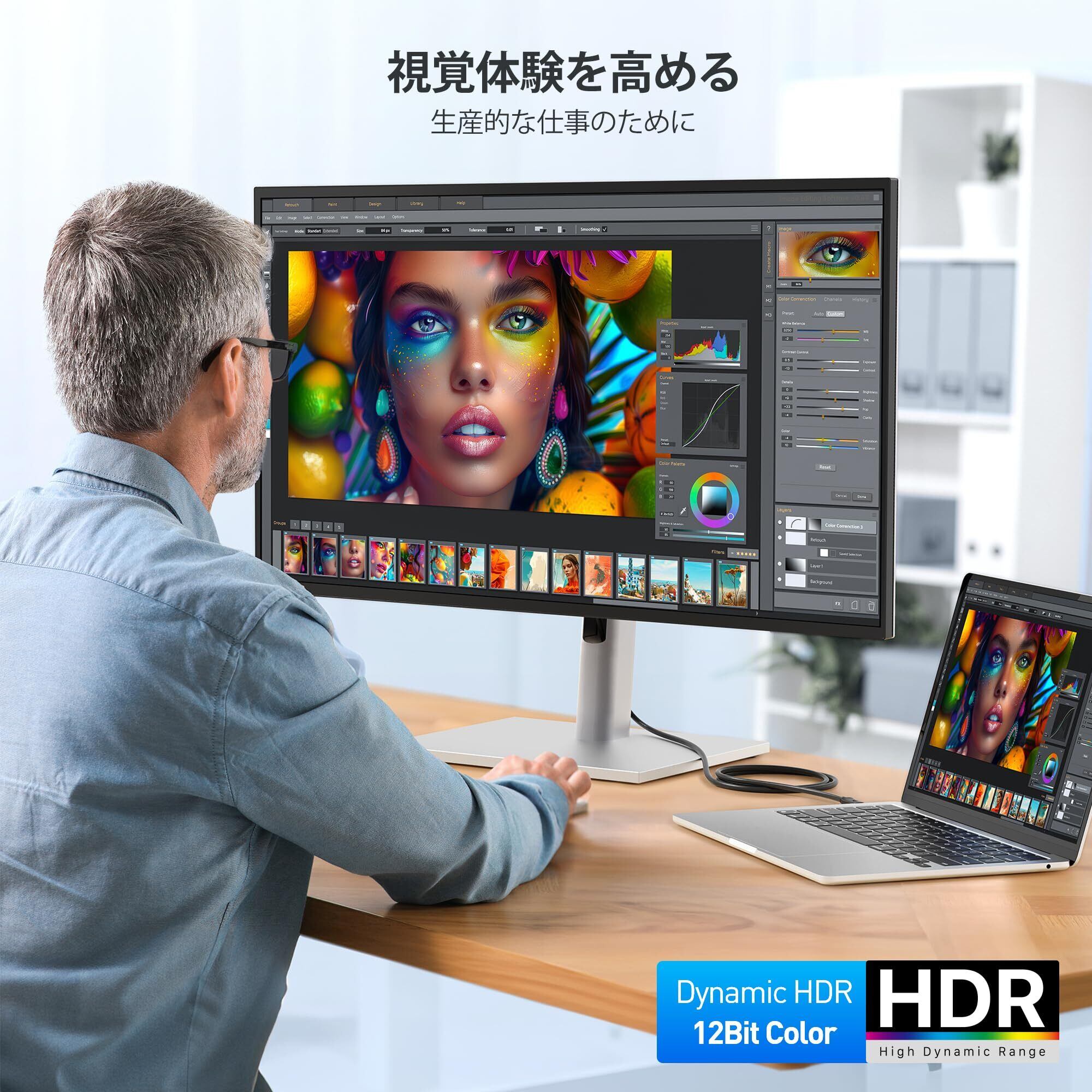 本製品は最大8K@60Hz、さらに4K@240Hzの解像度をサポートしており、映像の鮮明さは折り紙付きです。プロフェッショナルな映像編集や高画質ゲームにも最適で、すべてのコンテンツを贅沢なクオリティで体感できます!