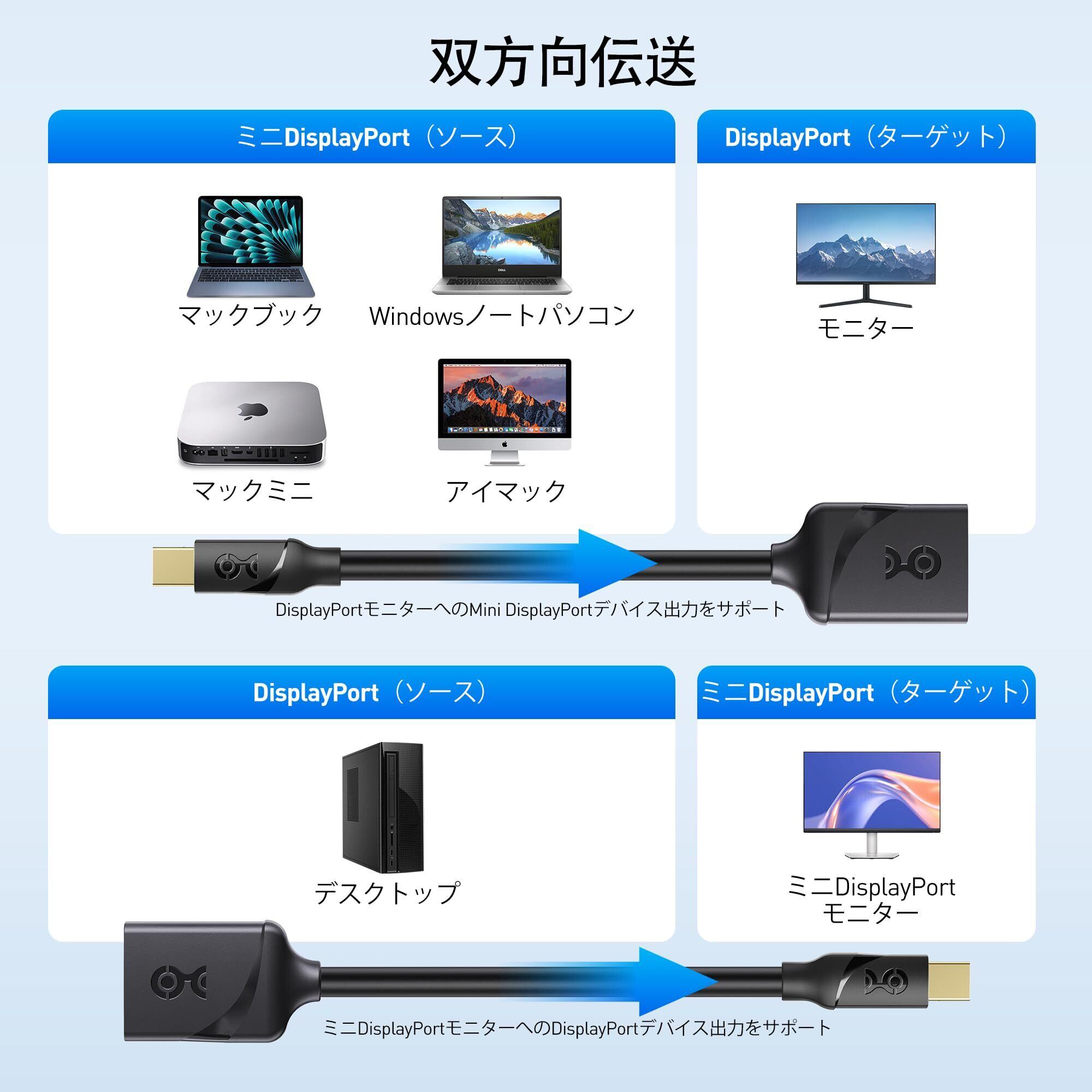 高品質で安心の設計と: Mini DP DP 1.4 アダプタは金メッキコネクタ、純銅導体、二重シールド(箔+編組)を採用し、信号劣化や接触不良を防止。Mini DisplayPort DisplayPort 1.4 アダプタはスリムコネクタ設計で隣接ポートをブロックせず、耐久性に優れています。さらに Thunderbolt 2 DisplayPort アダプタは 1 年間のメーカー付きで安心です。