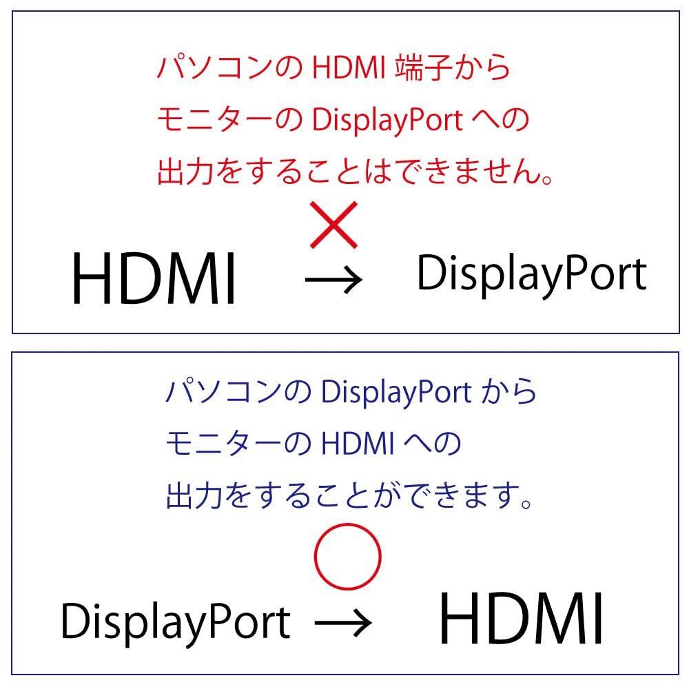 使用例:PC(DisplayPort)→モニター(HDMIポート)使用可能