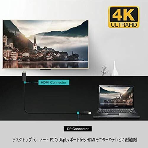 DisplayPortからHDMI変換ケーブル(HDMI→DisplayPortの使用は不可) 4K 2K 解像度対応 1.8m ブラック!