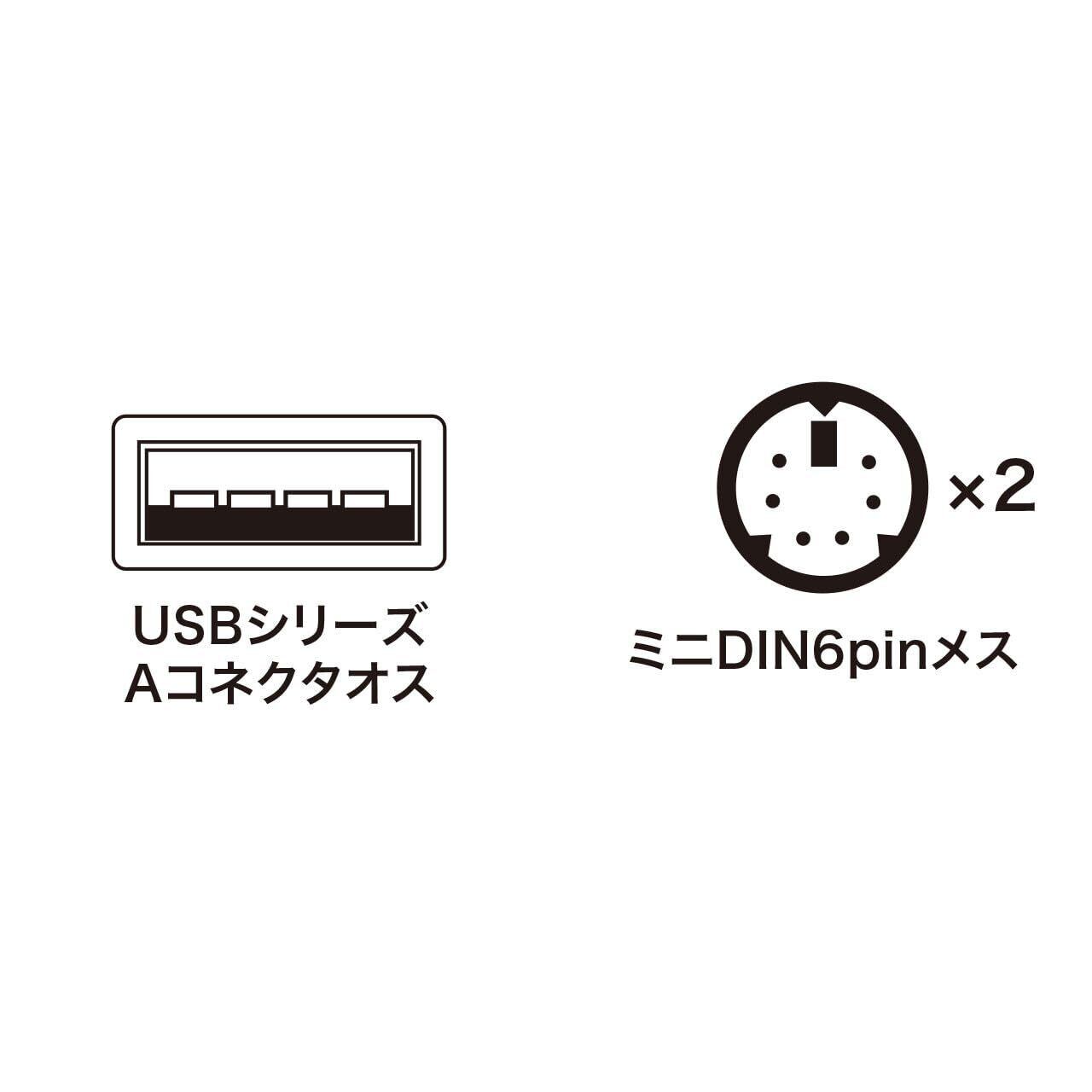 ■コネクタ:USBシリーズ Aコネクタオス-ミニDIN6pinメス×2