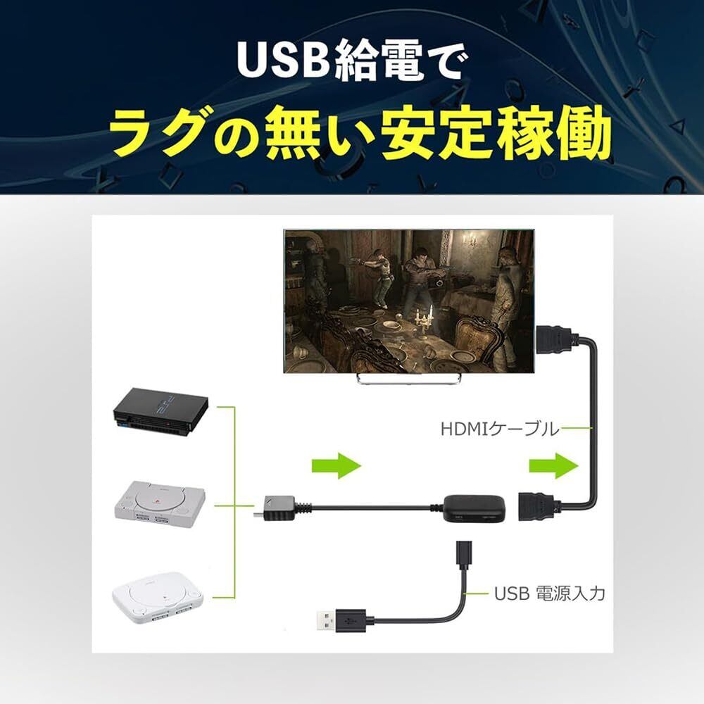 プレステ2 HDMI変換 コンバーター PS1/PS2/PSone 対応 プレイステーション HDMI 変換 アダプター (黒)