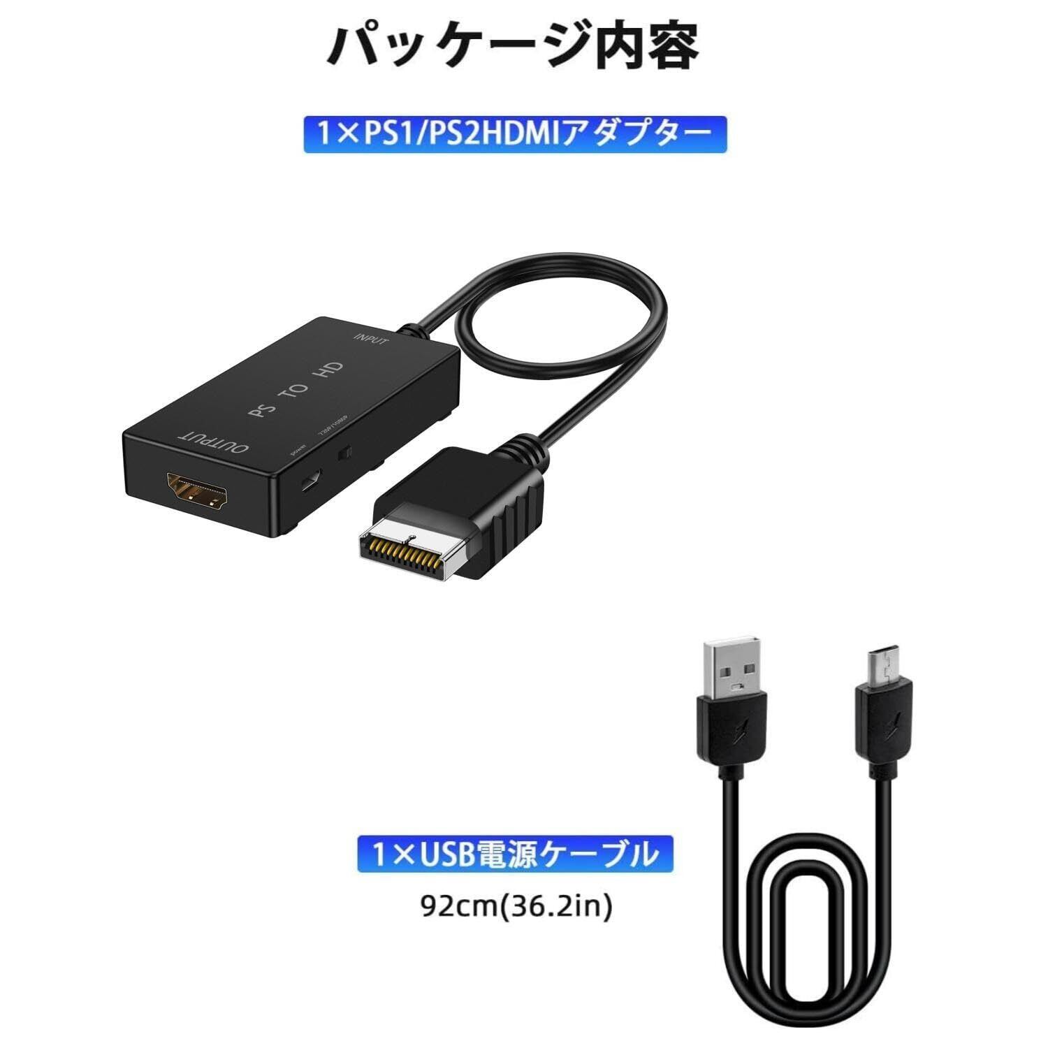 【安心サポート付き】パッケージ内容:PS1/PS2HDMI変換アダプター*1、USB電源コードケーブル*1(電源アダプターは付属しません)の注文番号から注文確認できればサポート対応しておりますので商品に関する不明点などがある場合は店舗までご連絡下さい。(アカウントサービス)、(注文履歴)、(販売店)、(質問する)から、ご連絡をいただきますようお願い申し上げます。