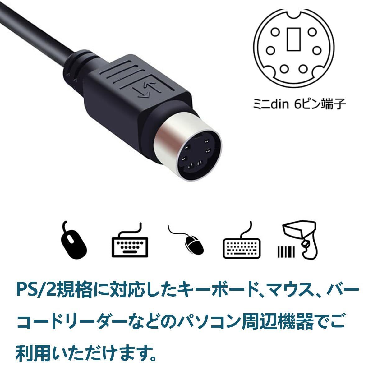 USB-PS/2変換コンバータ USB A (オス) -ミニDIN 6pin (メス)変換コンバータ PS/2接続キーボードとマウス USB2.0 変換ケーブル