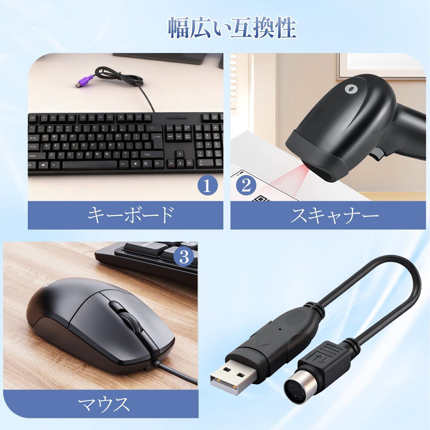 多くのキーボードやマウスがPS/2接続を利用しているため、この変換コンバータは大多数の周辺機器に対応可能です。過去に購入した周辺機器を再活用し、コストを抑えた環境を整えましょう。