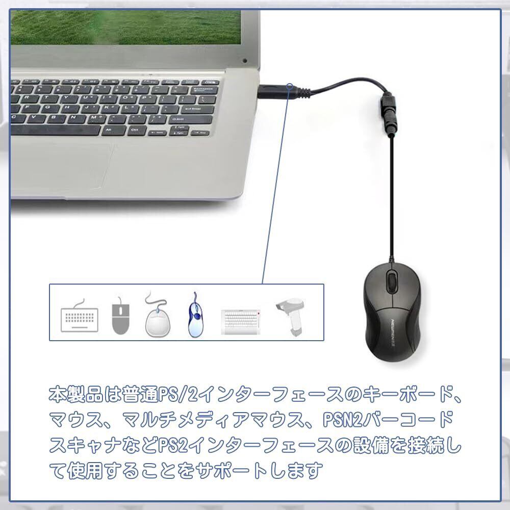USB2.0変換アダプタ USB-PS/2コントローラー 変換 PS/2接続キーボードとマウス USB A (オス) -ミニDIN 6pin