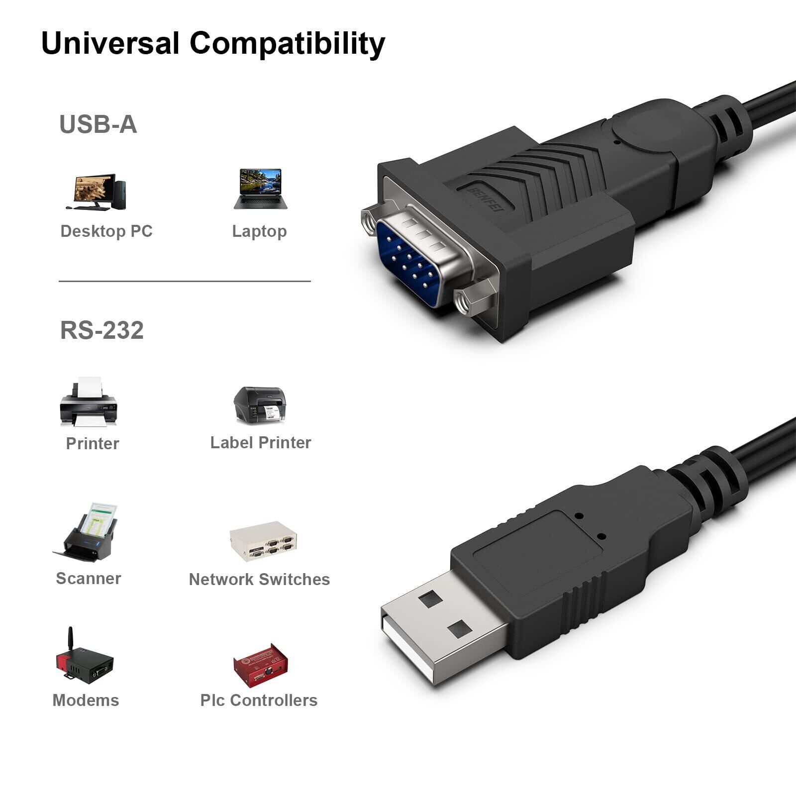 幅広い互換性: USB - RS232 アダプターは Prolific PL-2303 チップセットを搭載しており、Windows 11、10、8、7、XP、Vista、2000、98、MacOS8 以降、Linux 2.4.0 以降、その他のプラットフォームとの可能な限り幅広い互換性を実現します