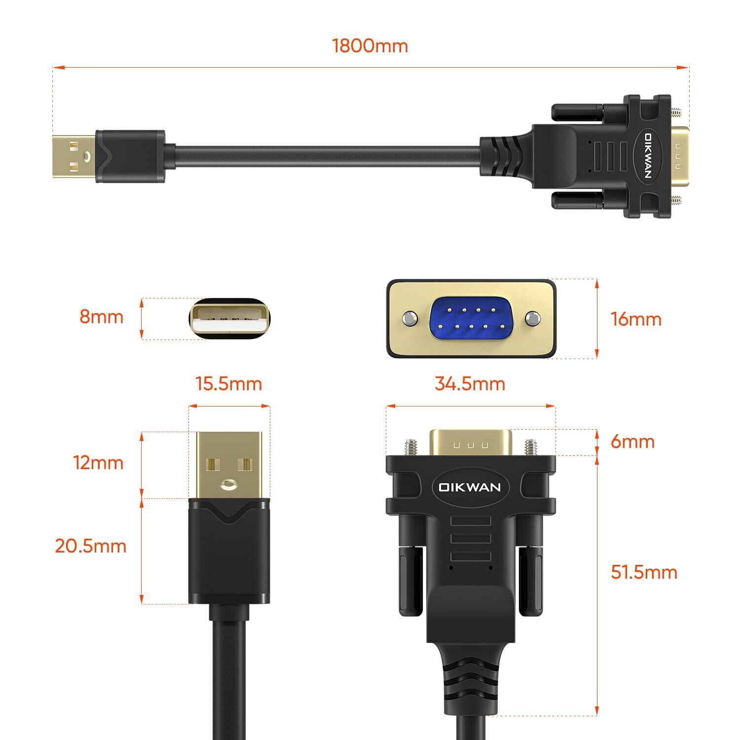 USB to RS232 USB Serial Adapter with FTDI Chipset USB 2.0 to Male DB9 Serial Cable for Windows 11,10, 8, 7, Vista, XP, 2000, Linux and Mac OS (6FT)