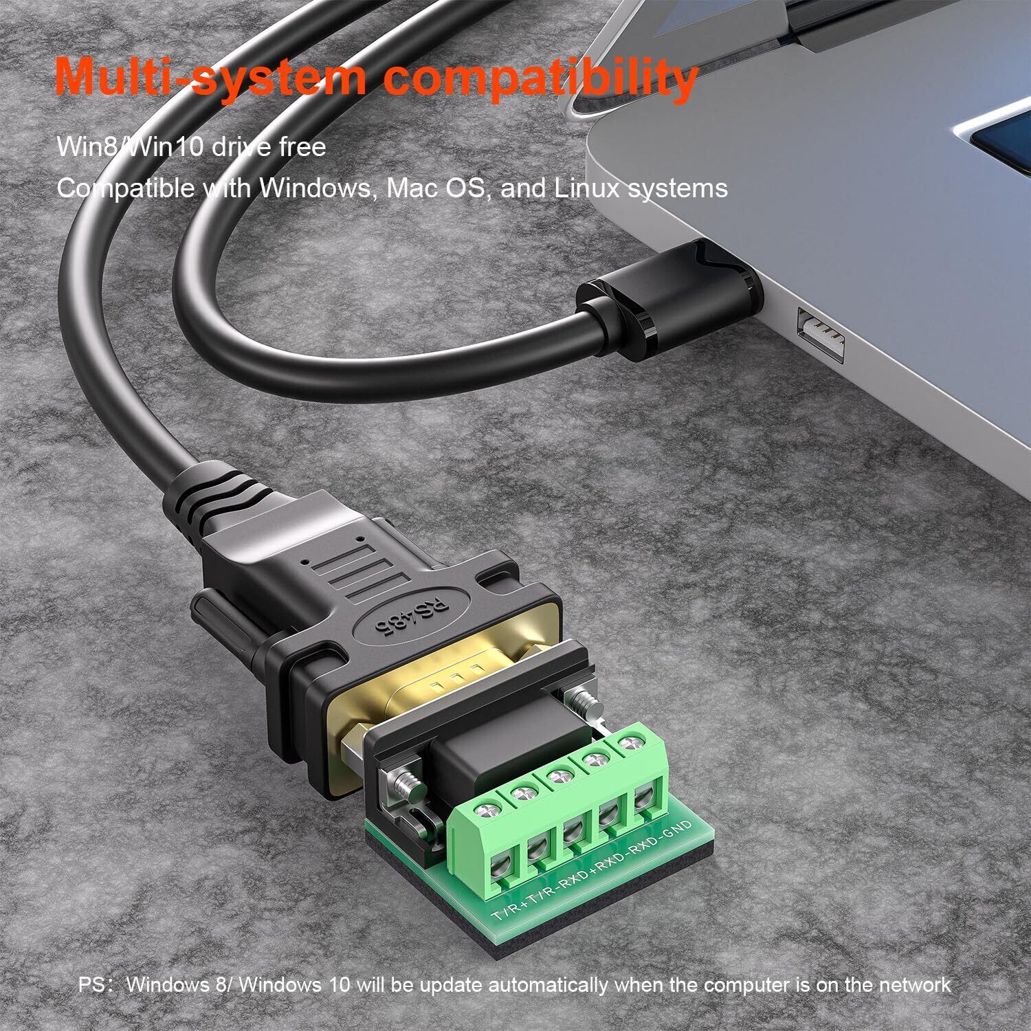 USB - RS485/RS422 シリアルポート変換アダプターケーブル FTDIチップ付き Windows 11 10 8 7 XP Mac対応
