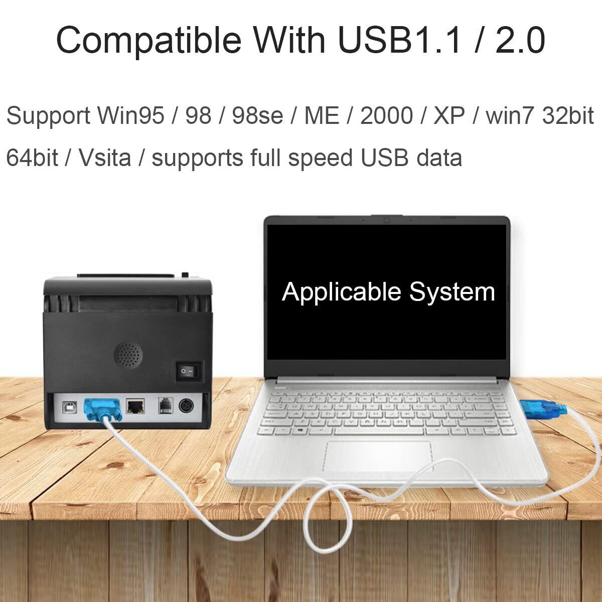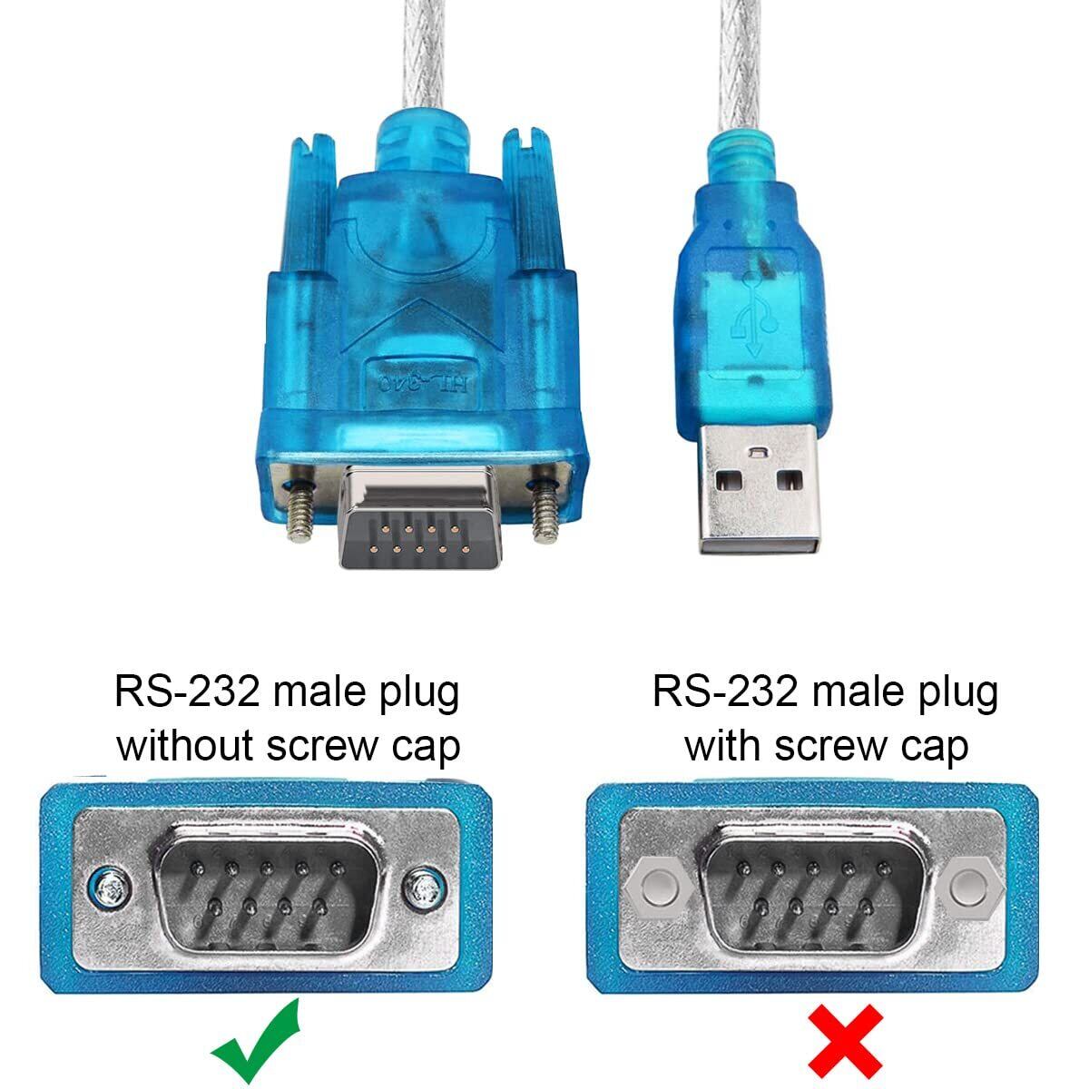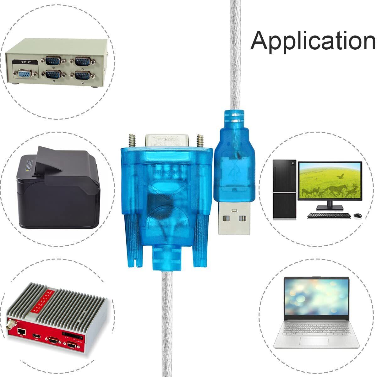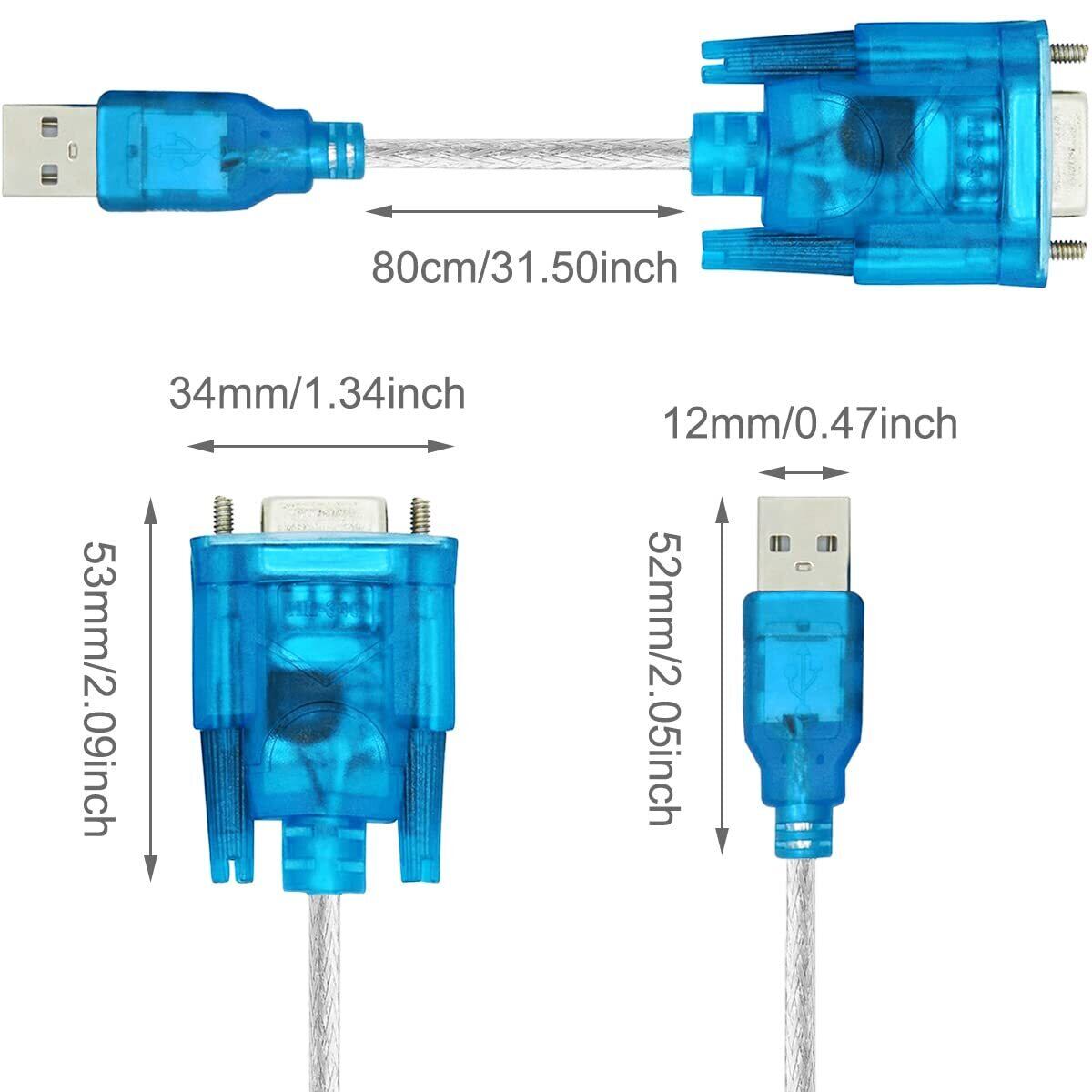 USBシリアル変換ケーブルRS232 9ピンオスDB9-USB 2.0 オス変換シリアルケーブル、チップセットとDB9メス-メス変換コネクタ付き、Windows 10 8 7用、2個