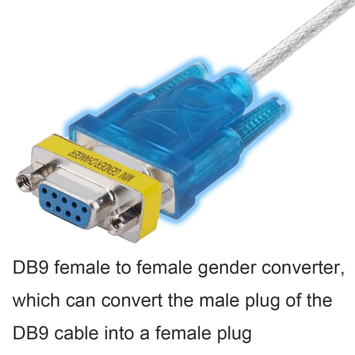 USBシリアル変換ケーブルRS232 9ピンオスDB9-USB 2.0 オス変換シリアルケーブル、チップセットとDB9メス-メス変換コネクタ付き、Windows 10 8 7用、2個!