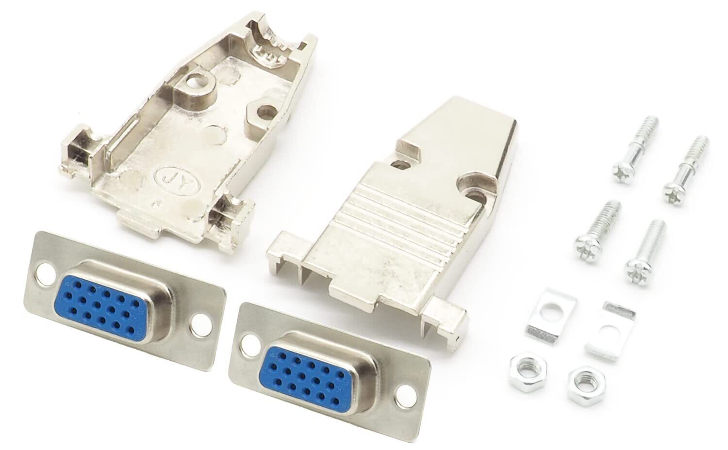 D-Sub メス (15pin ジャック) 金属ハウジング 自作用端子部品 2組