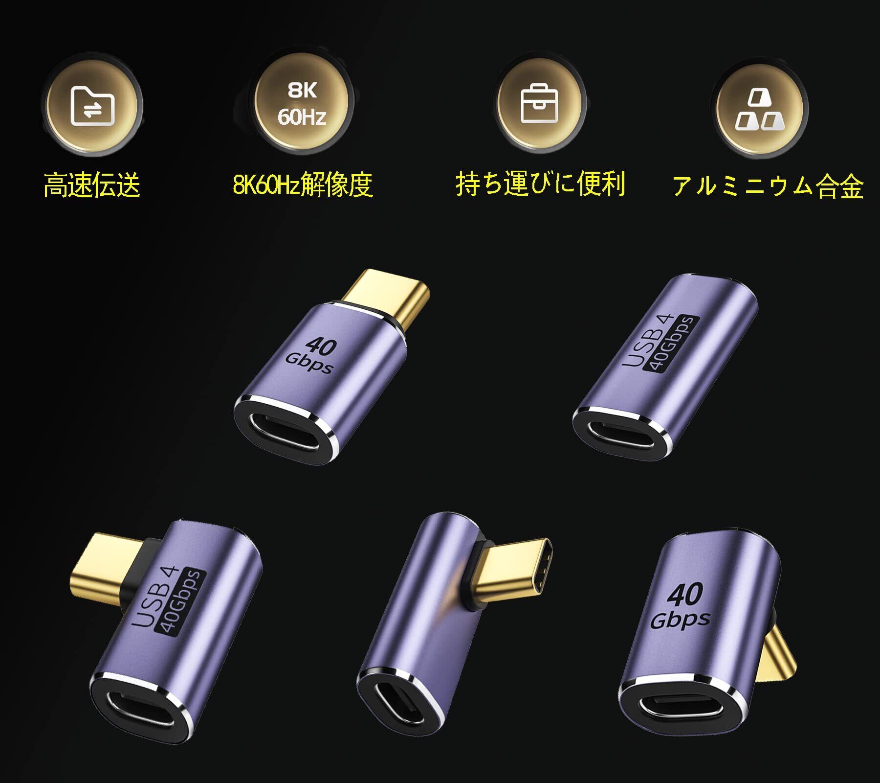 【便利で実用的】標準のUSB4アダプターは、40Gbpsに完全対応したUSB Cアダプターで、Thunderbolt4ケーブル用に設計されている。L型オス-メスアダプターです。L型のデザインを採用することで、狭いコーナーでの挿入の不便さを解消します。直角のデザイン、ケーブルの抜き差しが便利だ,ケーブルの折り曲げ及び断線を有効的に防止できされます