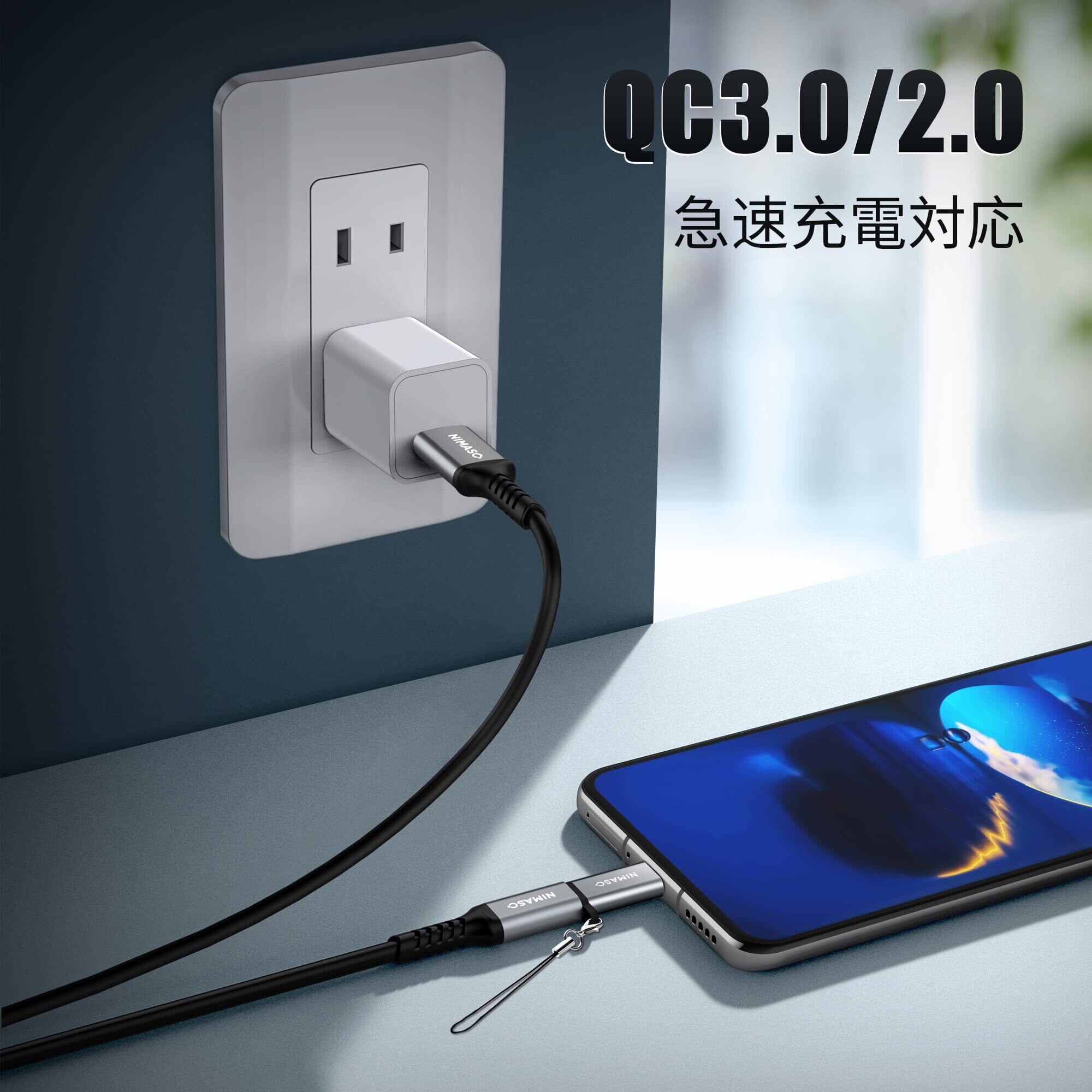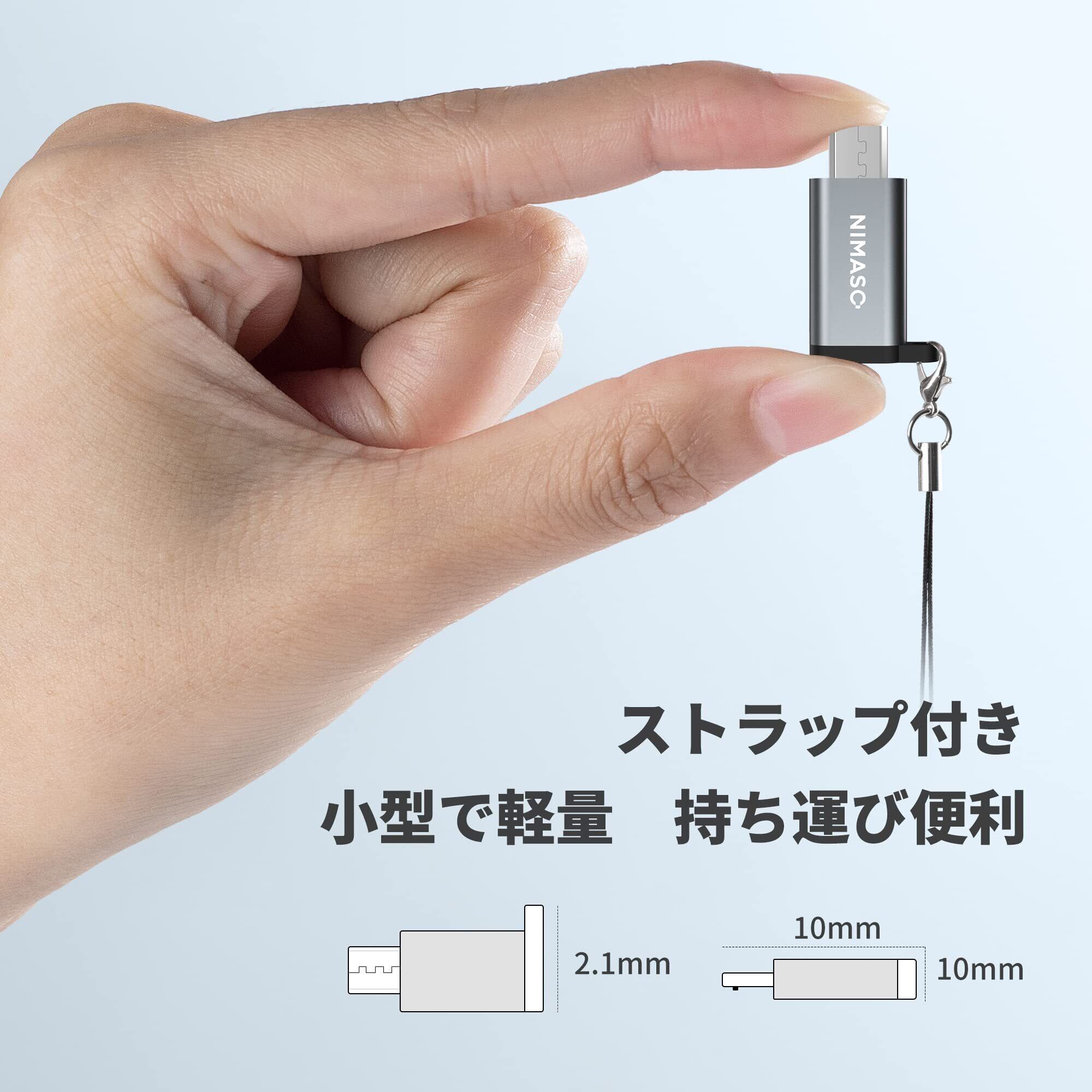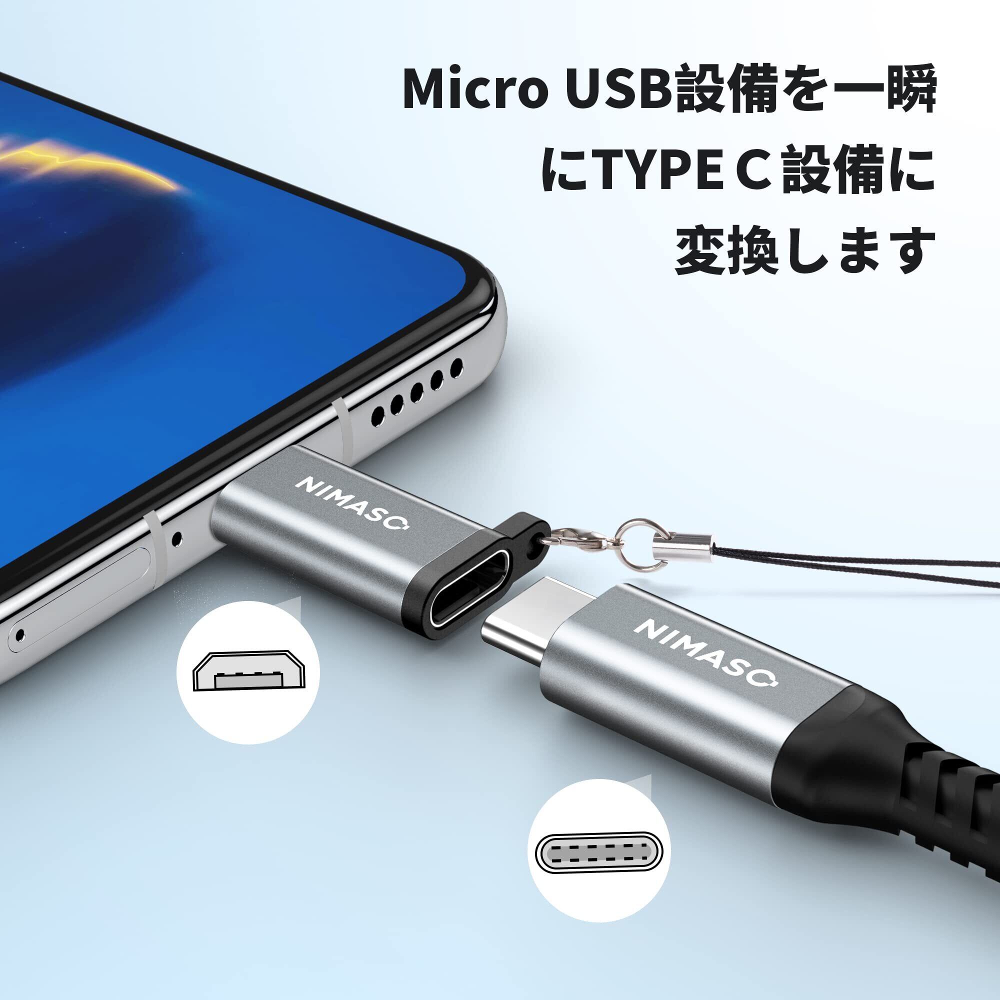NIMASO マイクロUSB変換アダプター【56kΩレジスタ搭載 2個入り】microusb 変換 type-c マイクロ USB 変換コネクタ Xperia、Galaxy、Nexus、HUAWEI等Micro USB設備対応 高速同期 小型化 ストラップ付NAD19A27