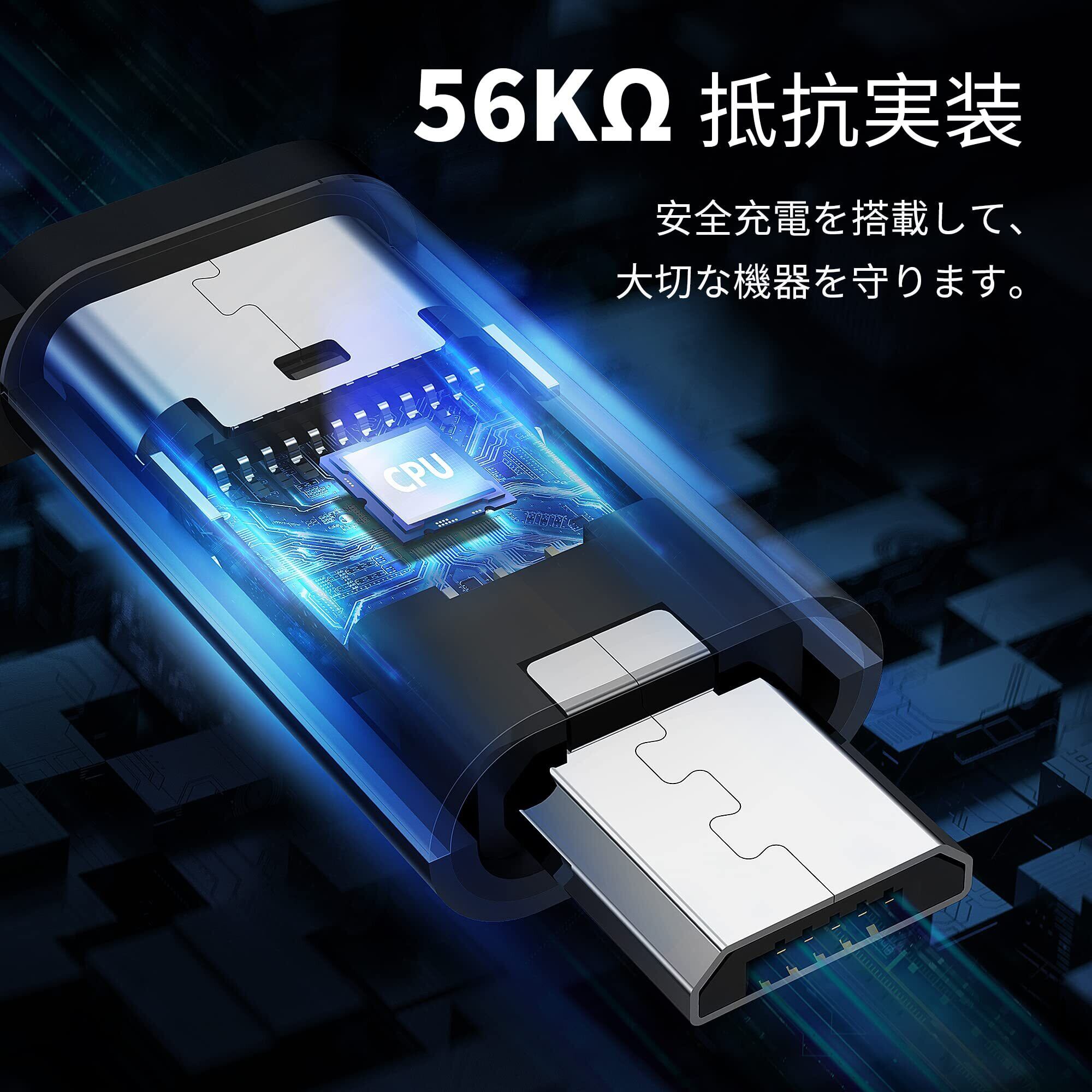 【安全保護】56kΩレジスタの実装によりデバイスを短絡、過充電、過熱などから高安全保護します。▼ご注意:OTG機能は非対応です。